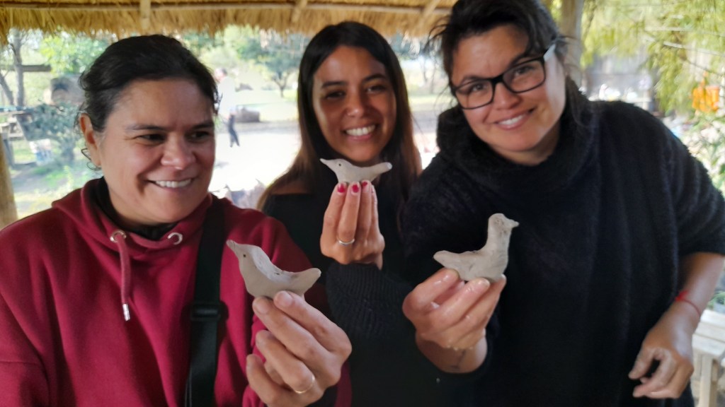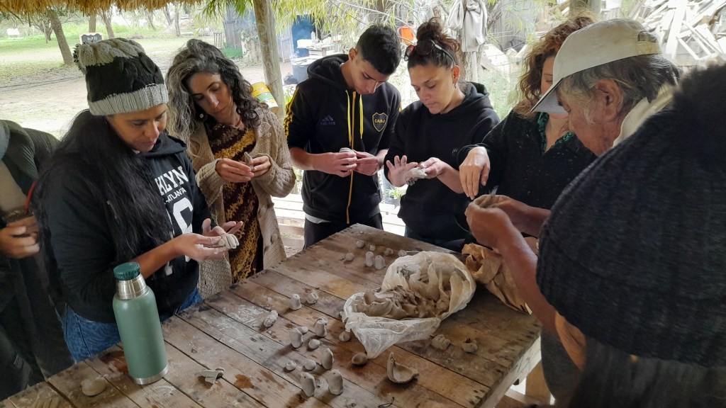 «Amancio Rojas nos acercó en una hermosa jornada su oficio y forma de hacer cerámica que heredó de su abuela en Formosa. Nos transmitió, con maneras muy simples y didácticas cómo hacer lechuzas, manos y otras piezas que dejamos secar para luego hornear a leña en una próxima jornada. El intercambio con otros ceramistas de comunidades siempre enriquece el camino y nutre e inspira el hacer», expresaron Julieta y Flor.
