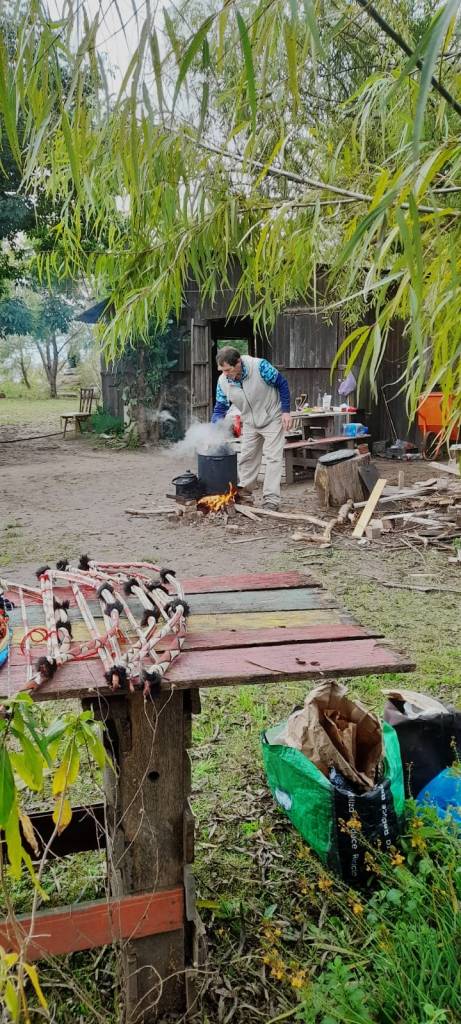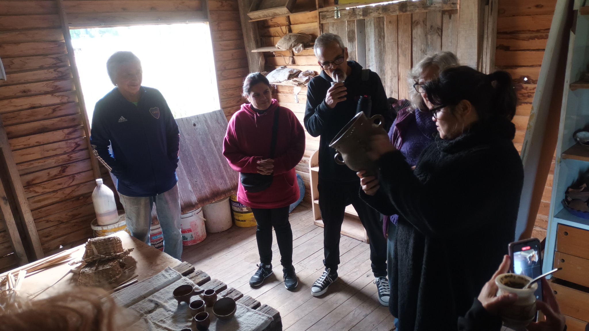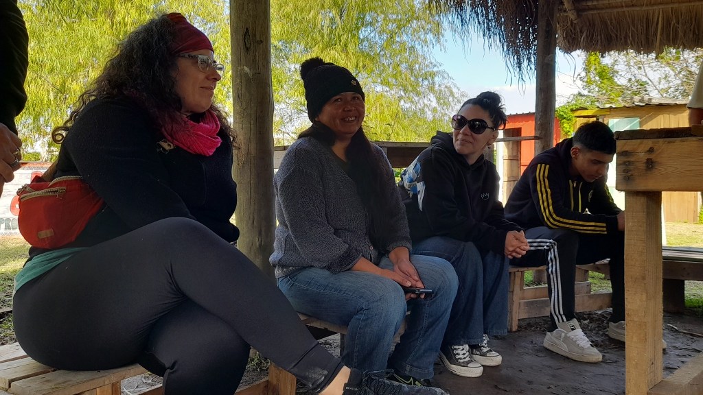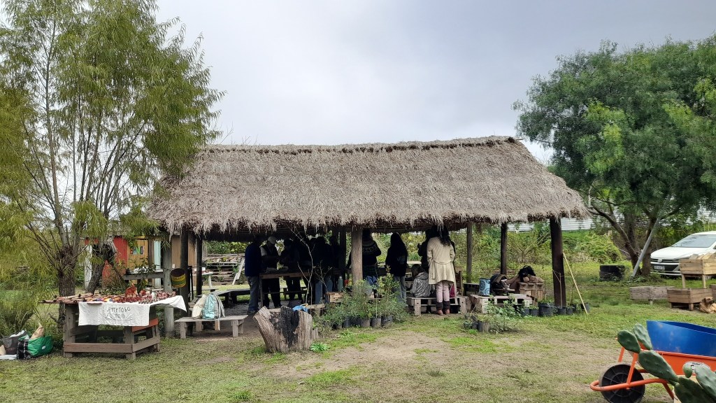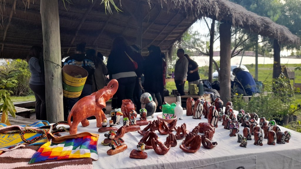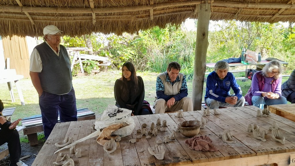 Además del taller, compartimos un guiso cocinado en el fogón y realizamos la recorrida guiada en el Museo Autónomo de Gestión Indígena, donde se exponen los tiestos de cerámica de mil años de antigüedad que originaron la lucha de Punta Querandí, así como ollas y cuencos completos que fueron recreados por un grupo de ceramistas de la provincia de Buenos Aires, siguiendo las técnicas y los diseños ancestrales.