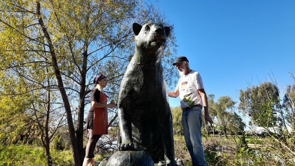 En Punta Querandí, ademas de integrantes de la comunidad, los recibieron los creadores del Monumento de la Yaguareté, José Luis Gómez y Alejandra Monteverde, quienes se encontraban haciendo reparaciones a la emblemática estatua.