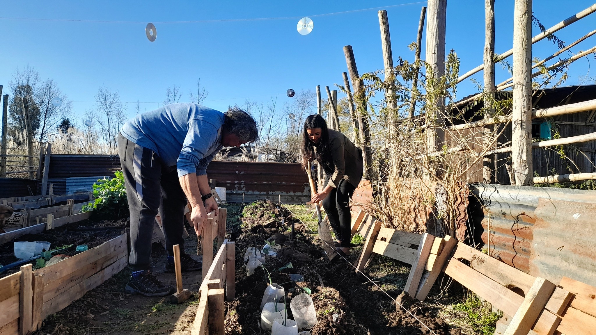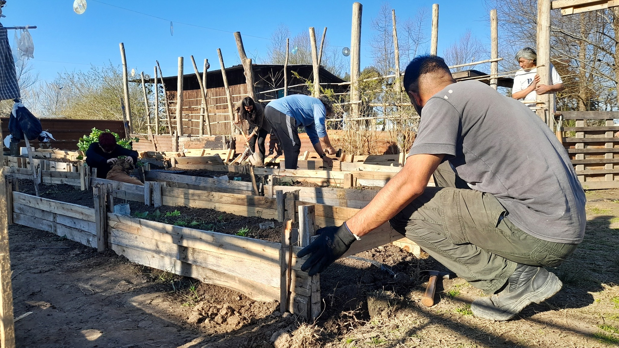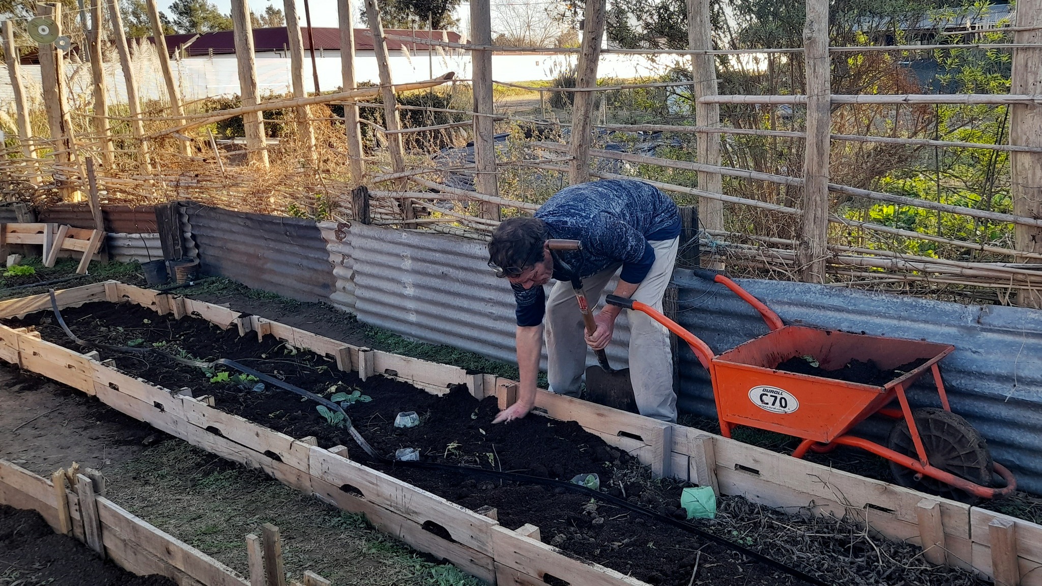 El domingo 13 de julio el trabajo más fuerte estuvo centrado en la huerta: continuamos con el armado de contenedores de madera para los bancales y seguimos usando el compost donado por el CEAMSE para fortalecer lo sembrado.