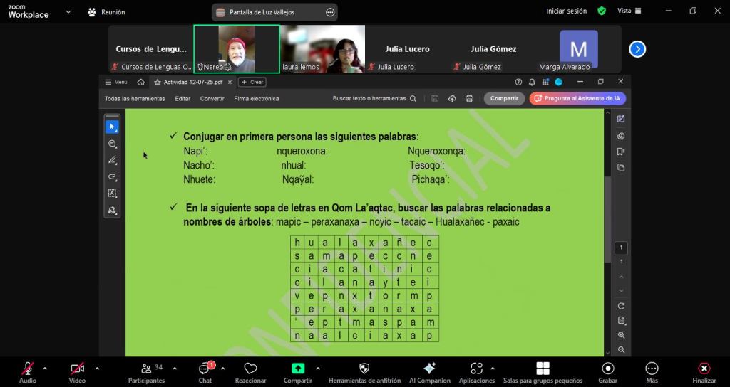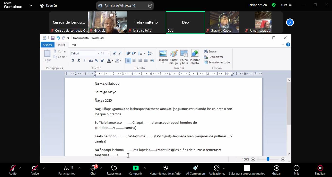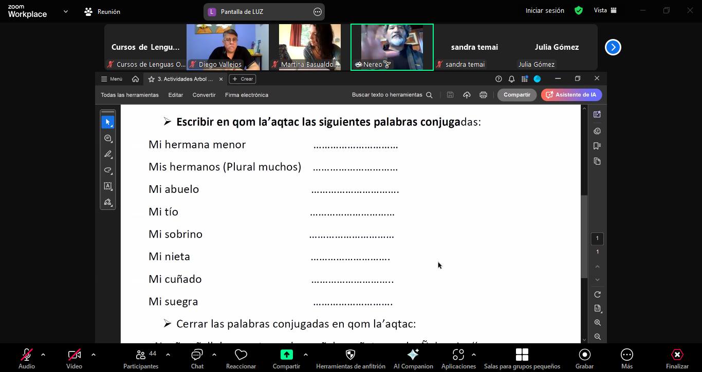 «Cuando por casualidad veo el dictado de los cursos automáticamente me inscribí, tengo sangre Guaraní por mi abuela materna, tengo cuñadas y amigas de la comunidad qom, por lo que me es importante poder hablar y entender la lengua originaria de la comunidad dónde crecí muy feliz y mis amigos aún hoy son qom. Gracias por las excelentes clases, sigan adelante», agregó la compañera.