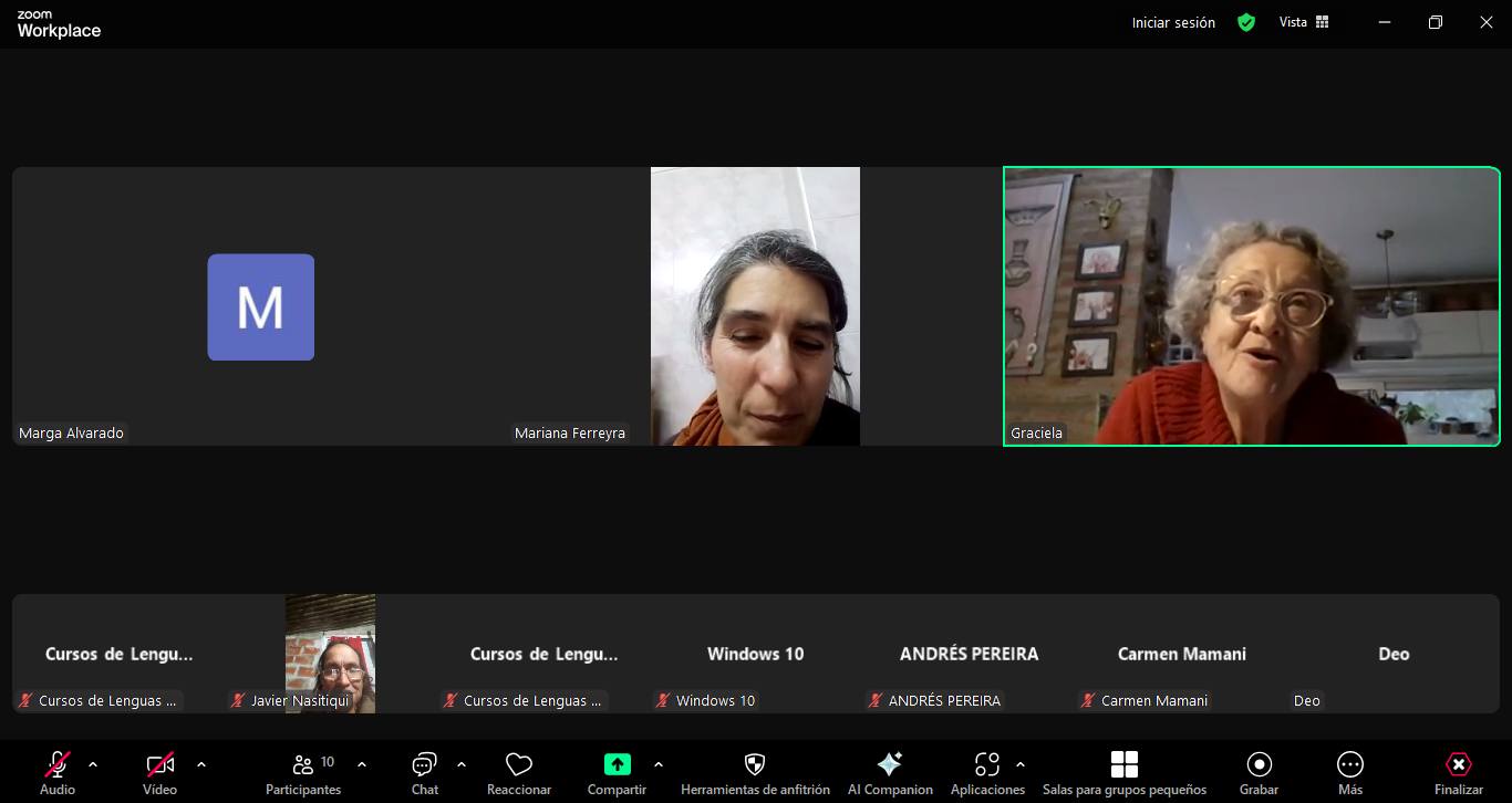 Graciela Margarita Gómez, de 71 años, relató que hace mucho tiempo quería estudiar la lengua moqoit y «acercarme nuevamente a su cosmovisión, que me trae recuerdos felices de mi niñez y que me une muchísimo a mi historia familiar», ya que se crió y pasó parte de su adolescencia cerca de las comunidades del norte santafesino.