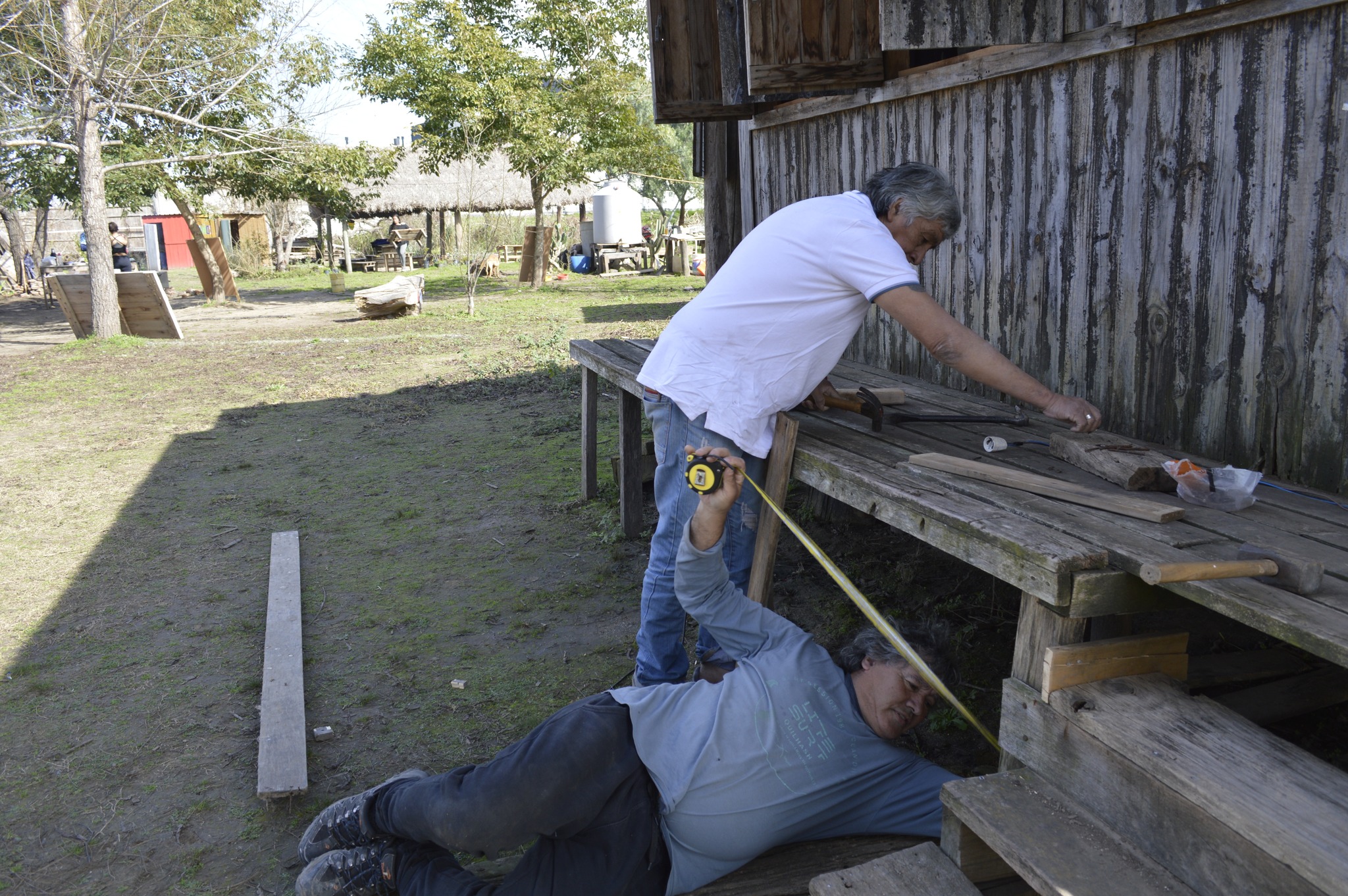 Además se trabajó en la huerta continuando con las labores de la semana, donde se hicieron más refuerzos de madera para los bancales. También se trasplantaron algunos de los árboles nativos.