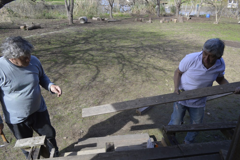 El mes de la Pachamama comenzó el domingo 3 de agosto con una intensa jornada de trabajo y muchas visitas en el territorio comunitario. Entre otras actividades, arreglamos la escalera del Museo Autónomo de Gestión Indígena, cortamos el pasto y terminamos de mover al lado de la huerta lo último del compost donado por CEAMSE que faltaba reubicar.