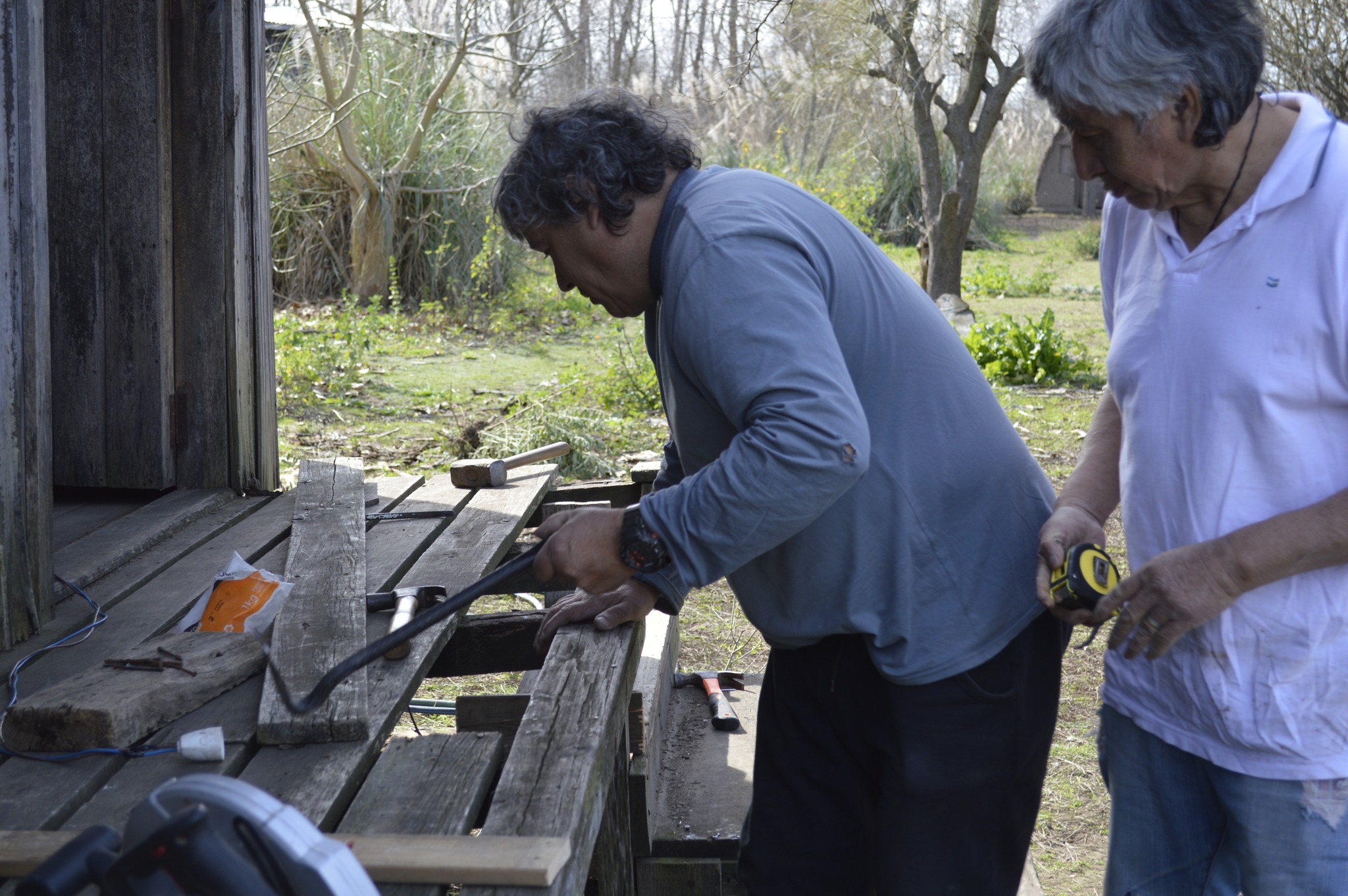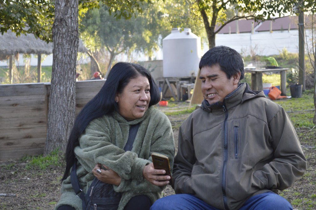 Desde la localidad tigrense de Rincón de Milberg llegaron Virginia Ayala y su primo Santiago Salteño, ambos integrantes del Pueblo Moqoit. Ella es nacida y criada en la Comunidad El Pastoril cerca de Villa Angela, pero vive en Tigre hace casi 20 años. El forma parte de la Comunidad Juan Larrea de la localidad de Charata, entre Santiago del Estero y Chaco, y actualmente está en Buenos Aires por asuntos de trabajo.