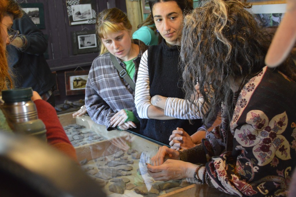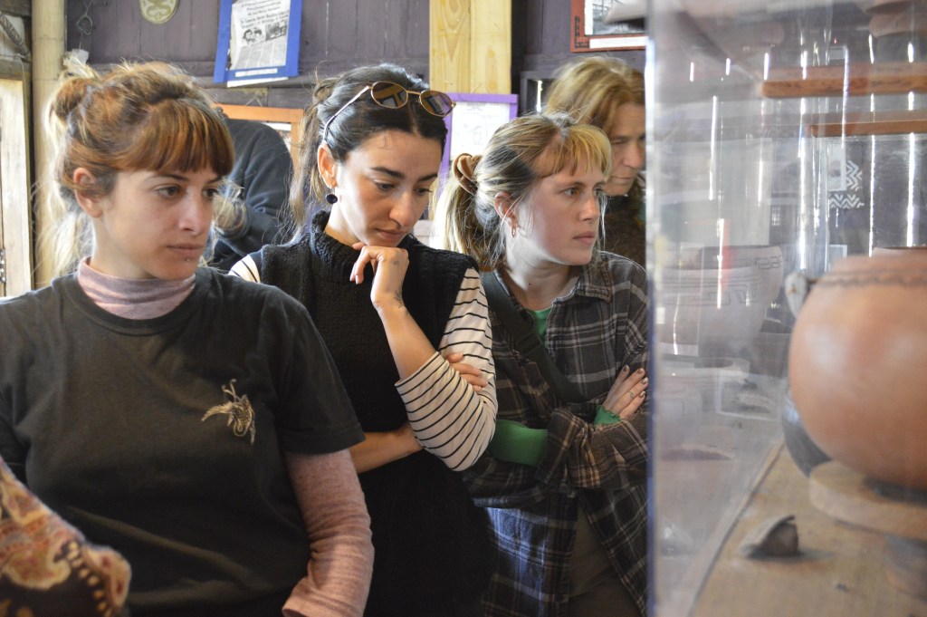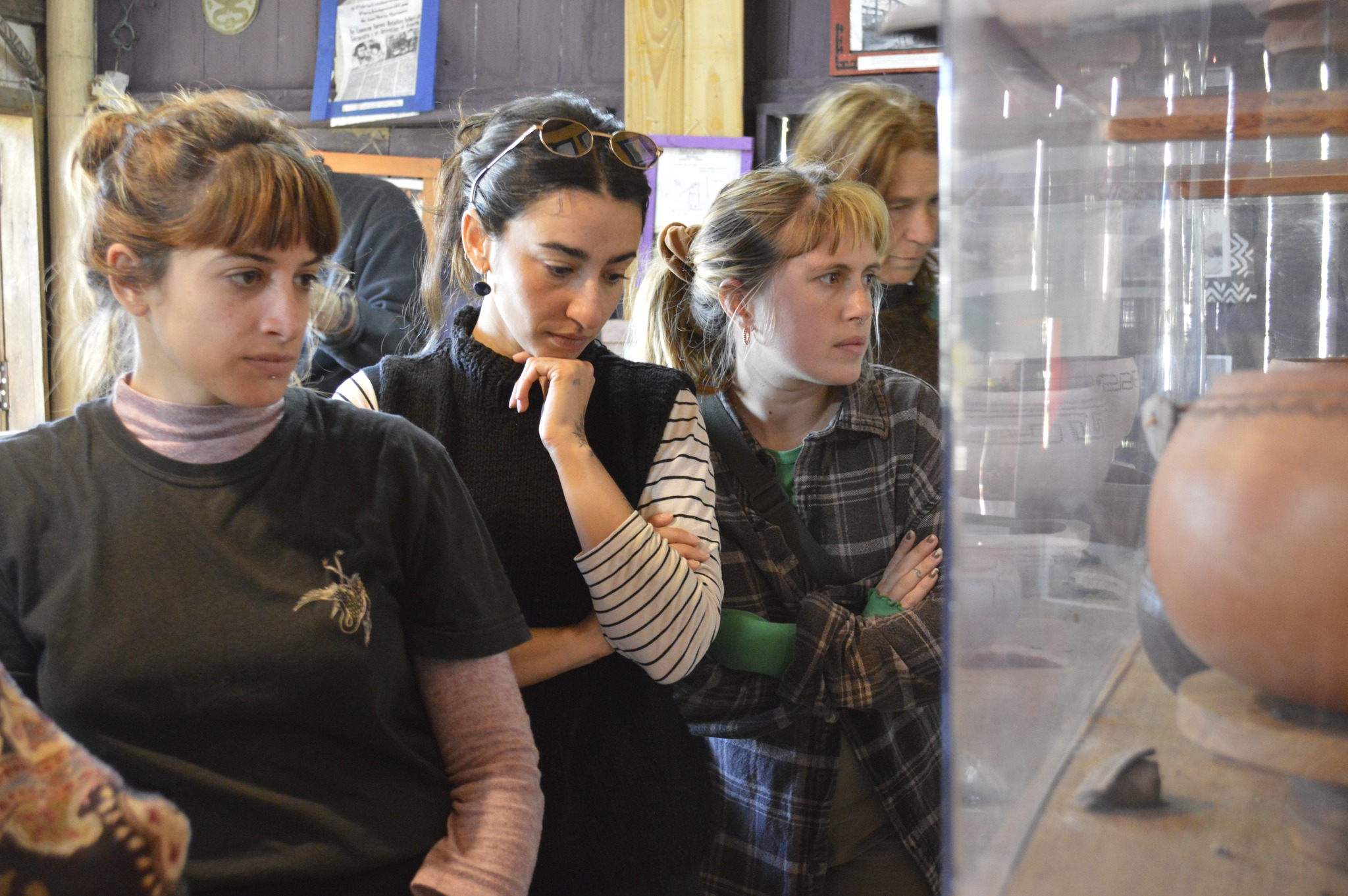 Antes de comenzar a levantar las piezas, se hizo una pequeña ronda de presentación y las ceramistas fueron al Museo Autónomo de Gestión Indígena para observar los tiestos ancestrales hallados y resguardados por la comunidad de Punta Querandí. Allí también pudieron ver el resultado de una investigación realizada junto a Olleras Cooperativas que dejó como resultado la recreación de cuencos siguiendo las técnicas milenarias.