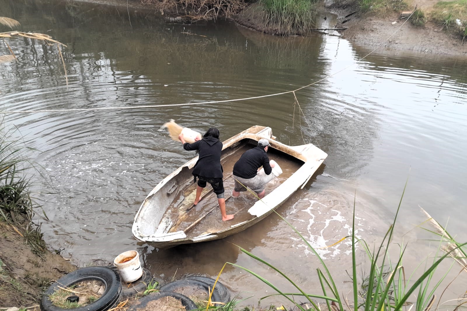 El domingo 17 de agosto la jornada comenzó movida, sacando a flote el bote que se había hundido en el Arroyo Garín, aunque por la bajante del río ya estaba en condiciones de recuperar.