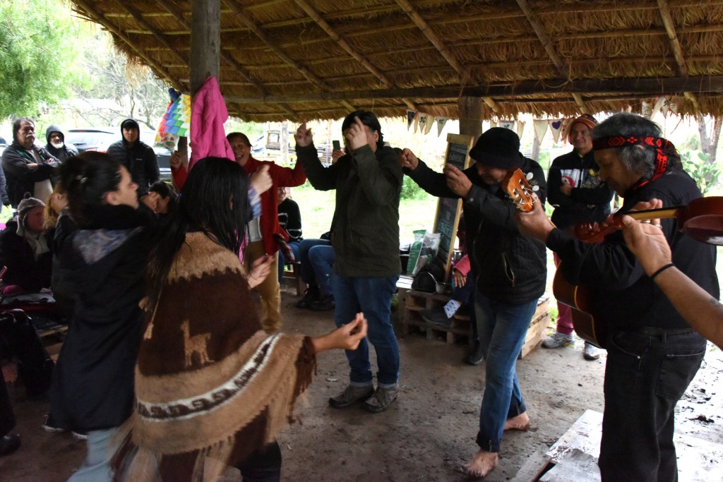 Siguió la música mapuche de Cheuke Pu Lof acompañado por Aylén Ferreyra y Maxi Segura, quienes también recorrieron otros géneros y comenzaron los primeros bailes bajo el quincho.