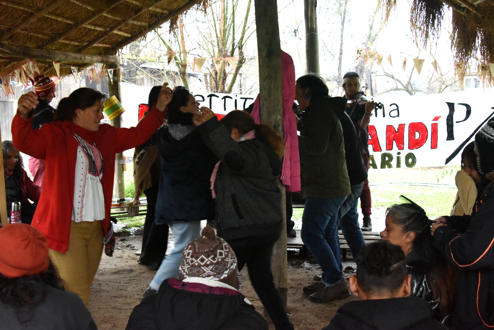 La única modificación impuesta por el clima fue que el resto de la celebración se hizo debajo del quincho comunitario, al resguardo del agua. Allí compartimos la comida (que tuvo el aporte del Sindicato de Trabajadores Municipales de Tigre) y los distintos números musicales y de danzas.