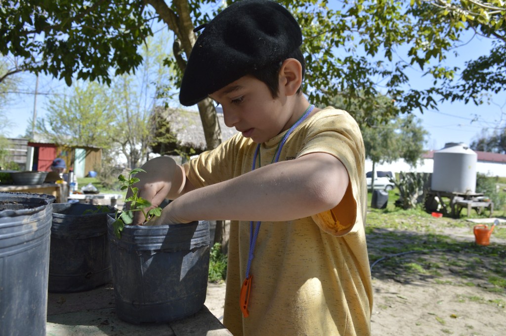 Para concretar esto, reciclamos macetas usadas y preparamos la tierra enriqueciéndola con el compost donado por el CEAMSE algunos meses atrás.