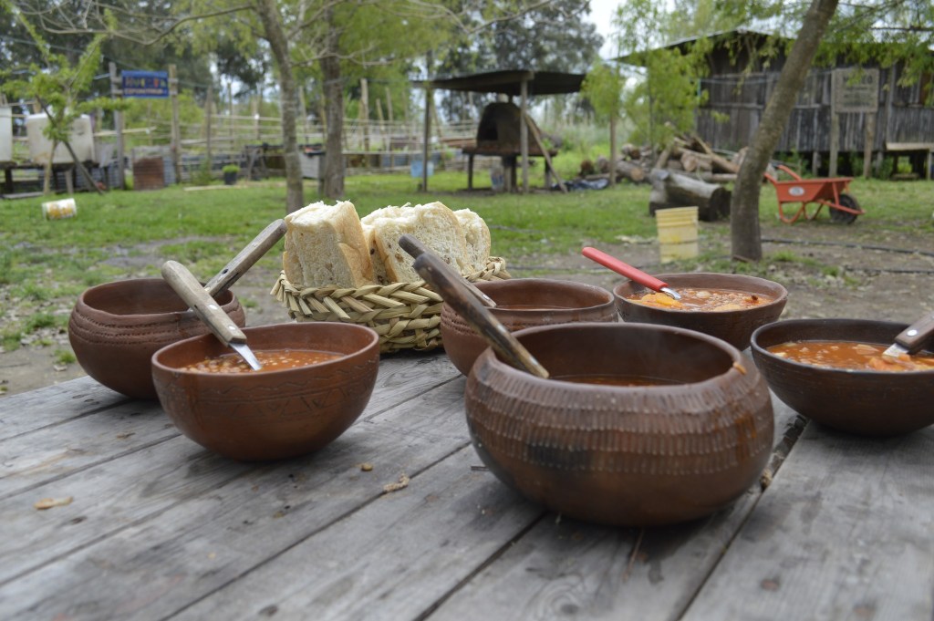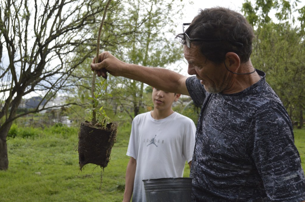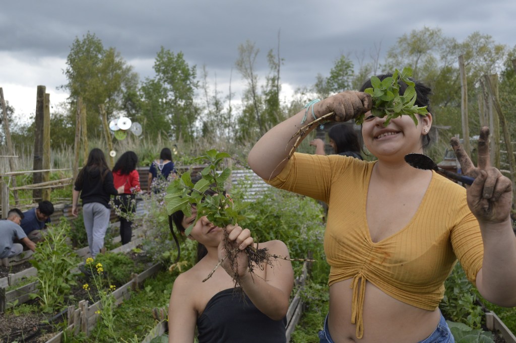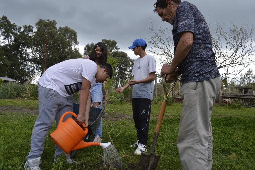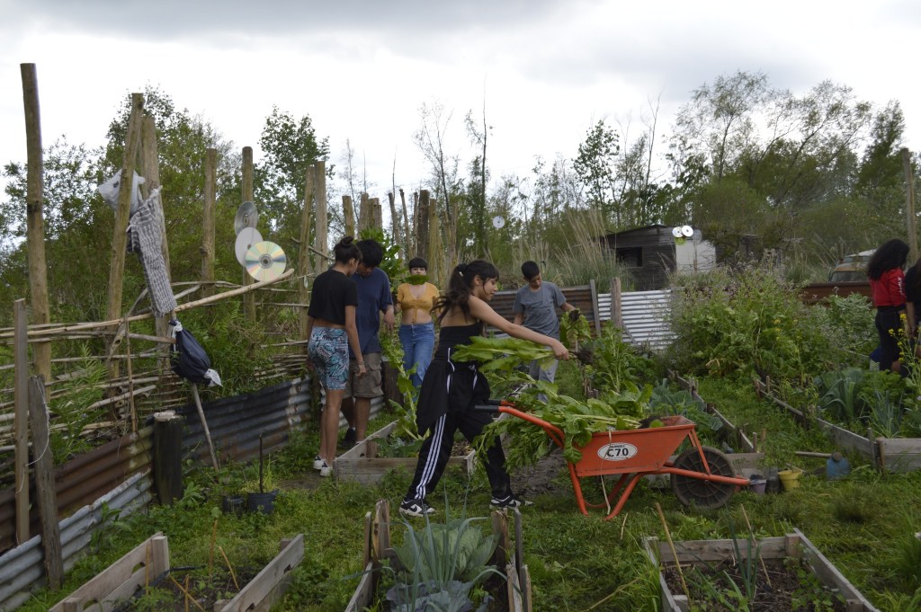 La visita guiada recorrió las distintas construcciones y espacios significativos de Punta Querandí. En la huerta cosecharon lechugas y acelgas y ayudaron a trasplantar pimientos y tomates cherry. Otras tareas del día fueron trasplantar árboles nativos y mejorar el mobiliario del Salón Comunitario Cacique Manuá.