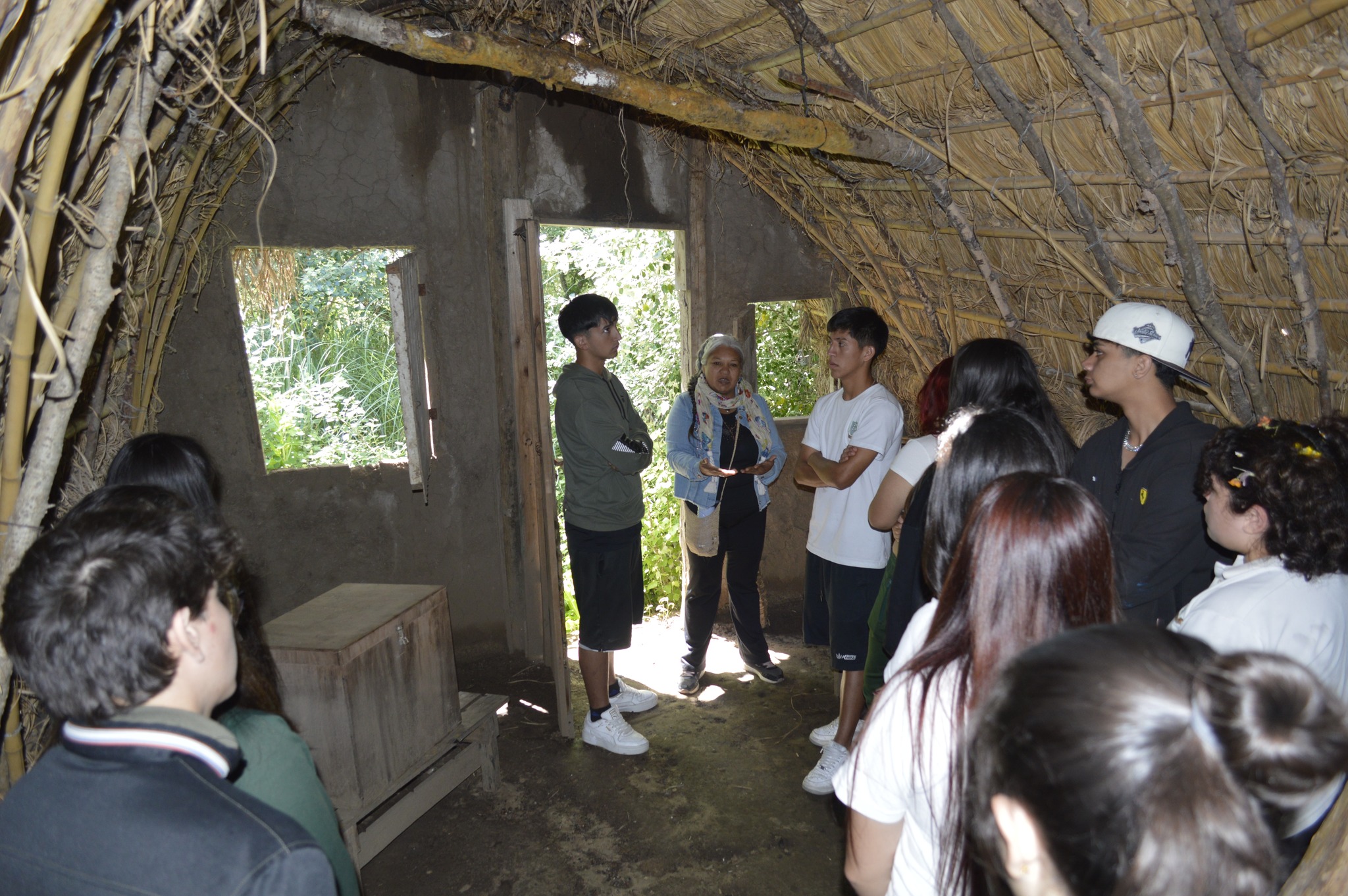A un ritmo de dos o tres visitas por semana, vienen estudiantes de distintas localidades vecinas, que realizan una dinámica similar: luego de una ronda de bienvenida, hacen la recorrida guiada por el Museo Autónomo de Gestión Indígena y por todas las construcciones y sectores significativos del territorio.
