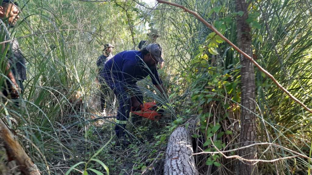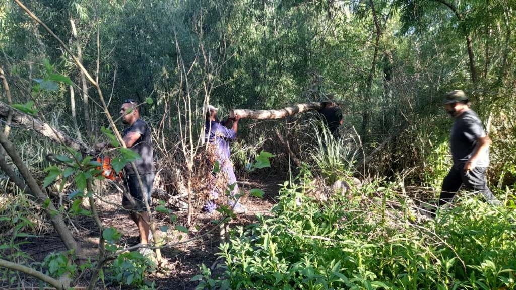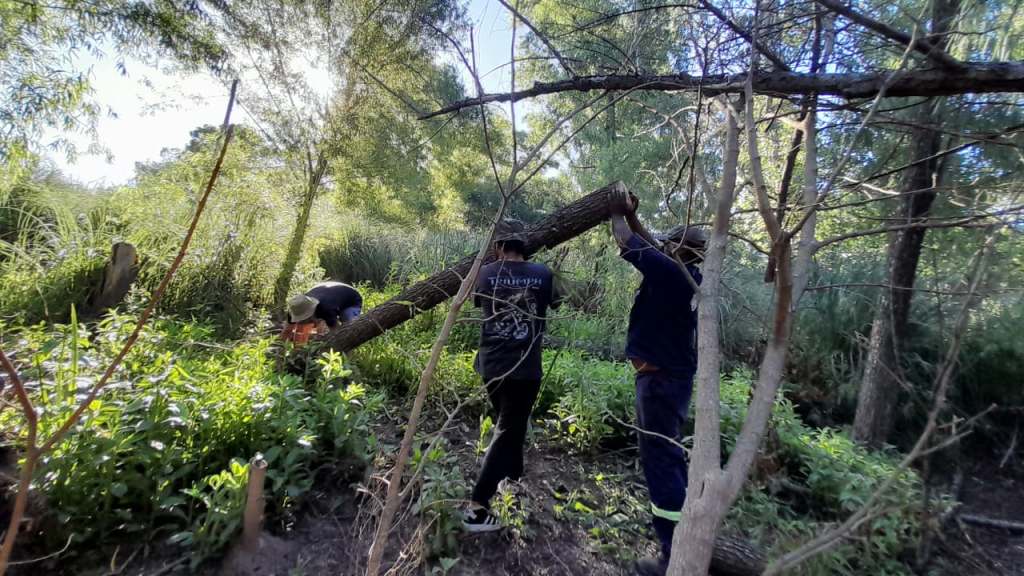 Sin embargo, el jueves 4 de diciembre la actividad estuvo focalizada en cortar troncos caídos del bosque para utilizarlos como postes, aprovechando la participación de compañeros que trajeron una motosierra.