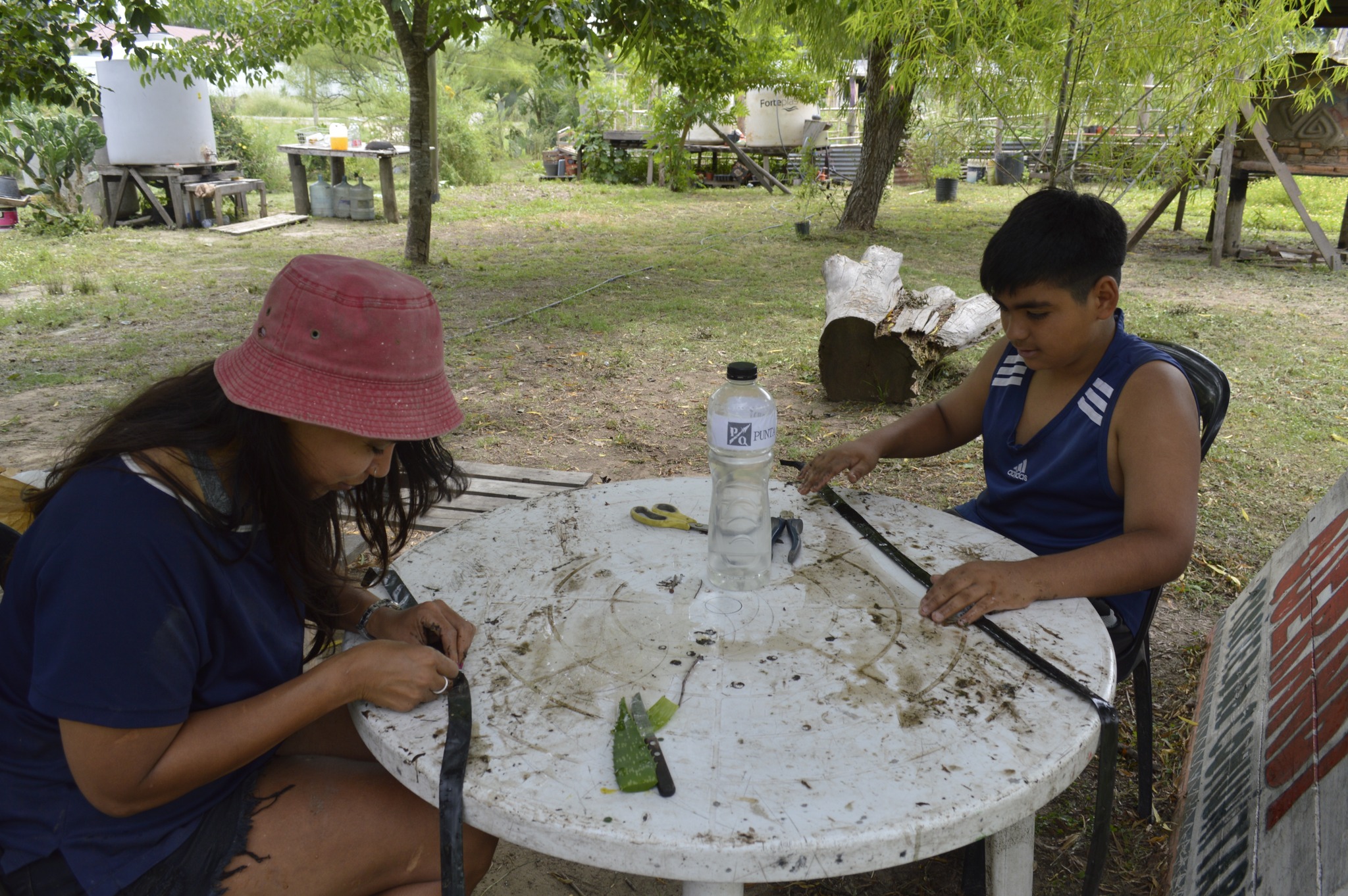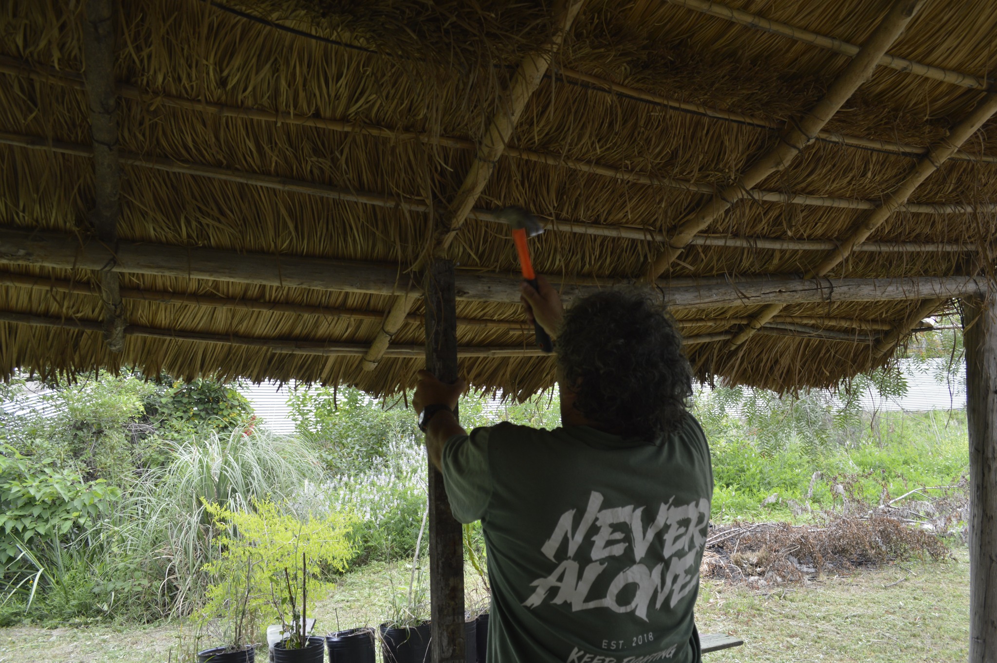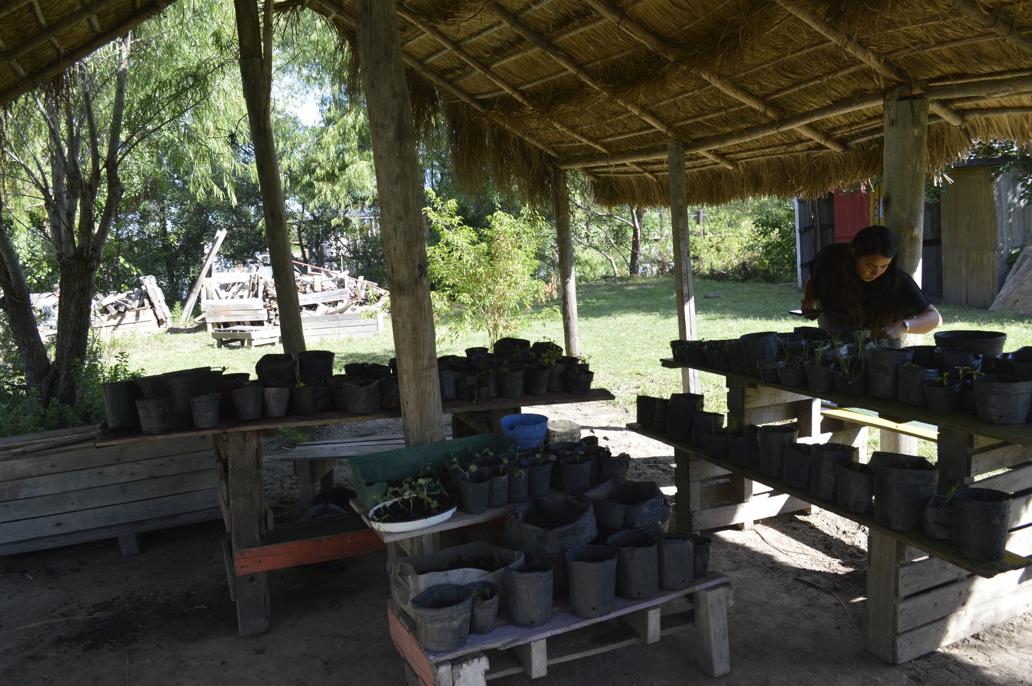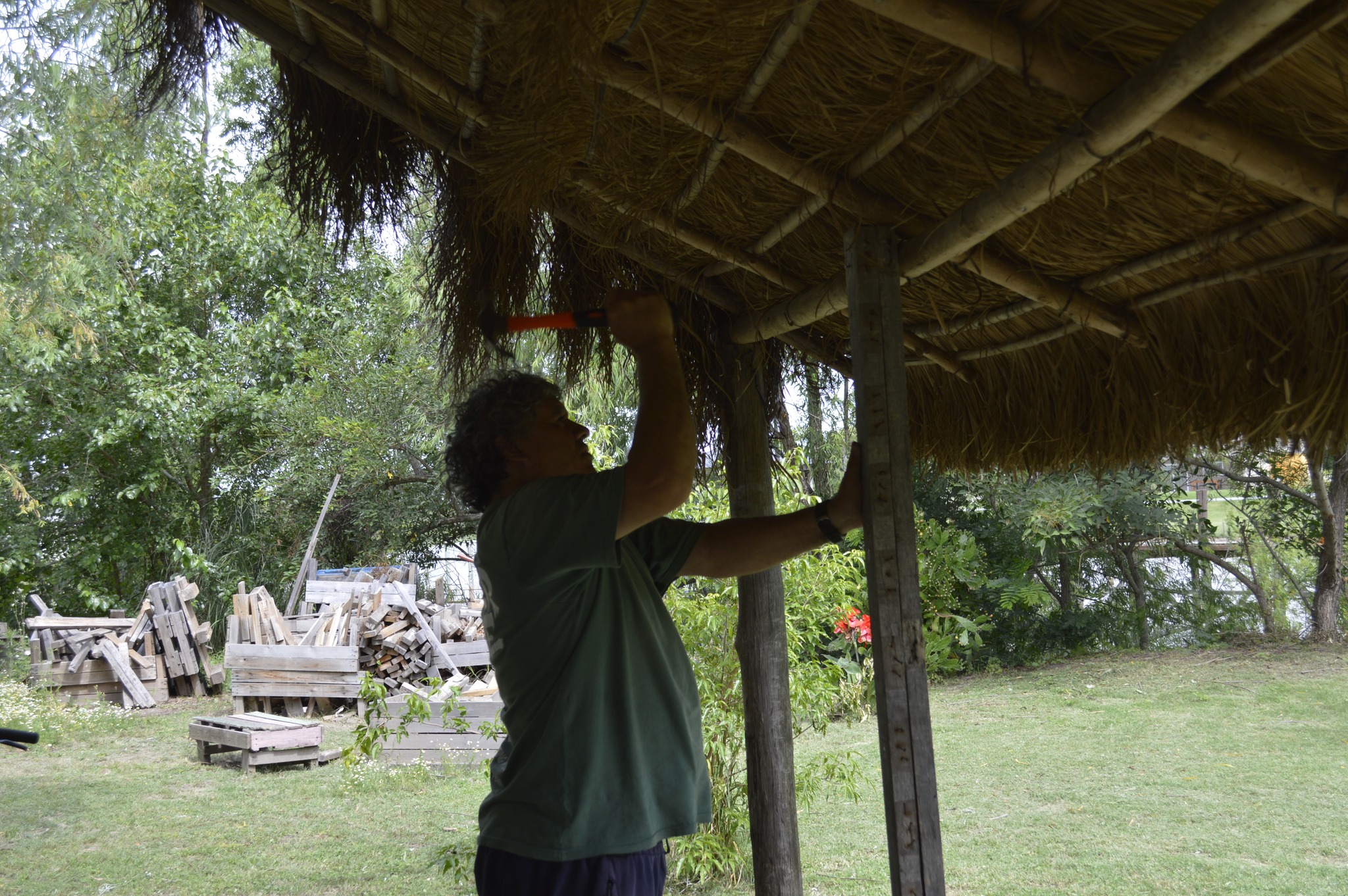 Por otro lado, se hizo un arreglo en el quincho de paja brava, reforzando con dos postes uno de los laterales para garantizar la durabilidad de este espacio construido comunitariamente y tan vital en verano.