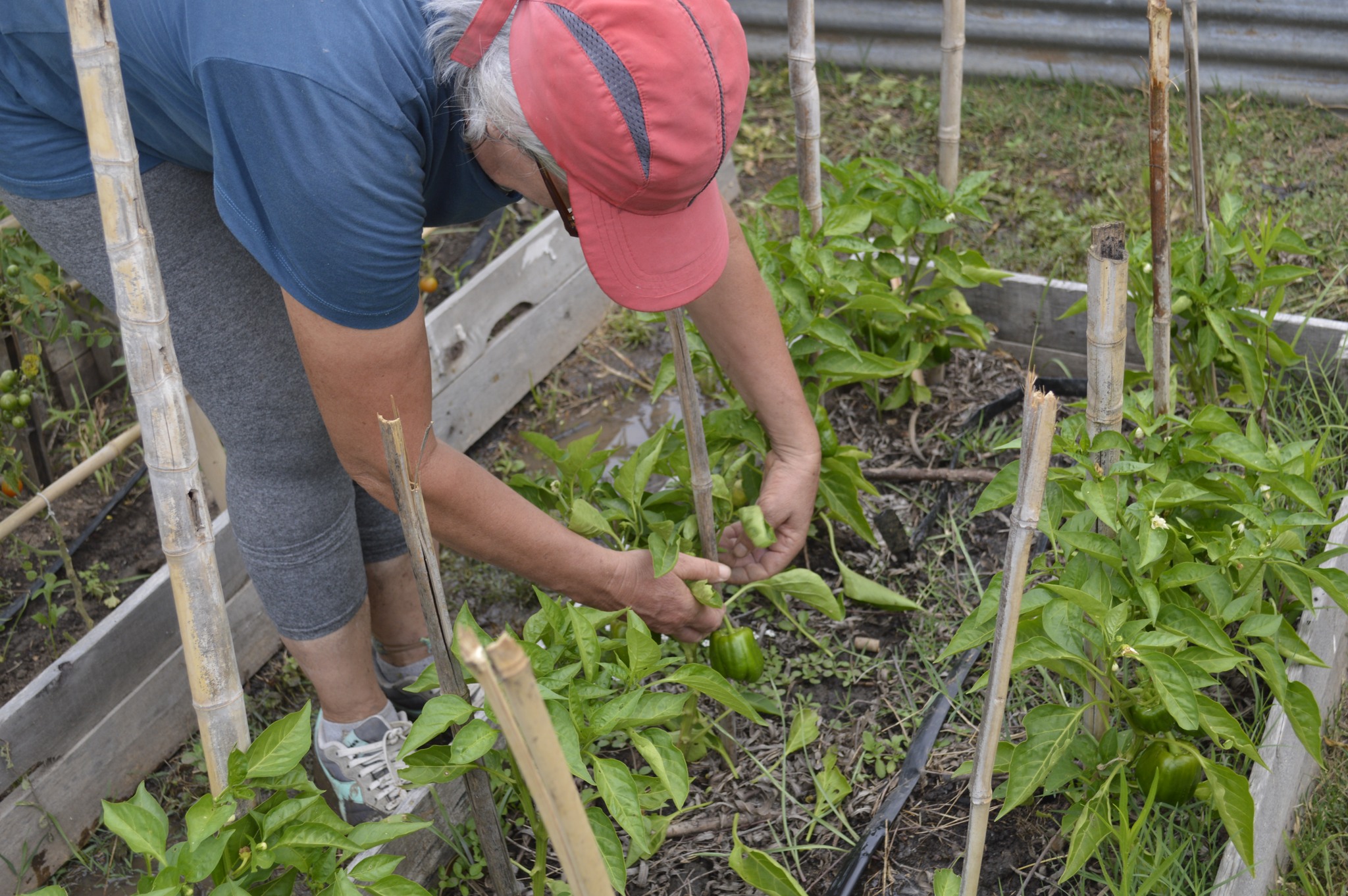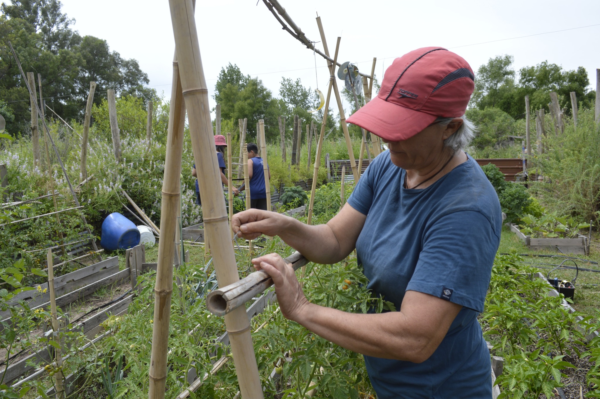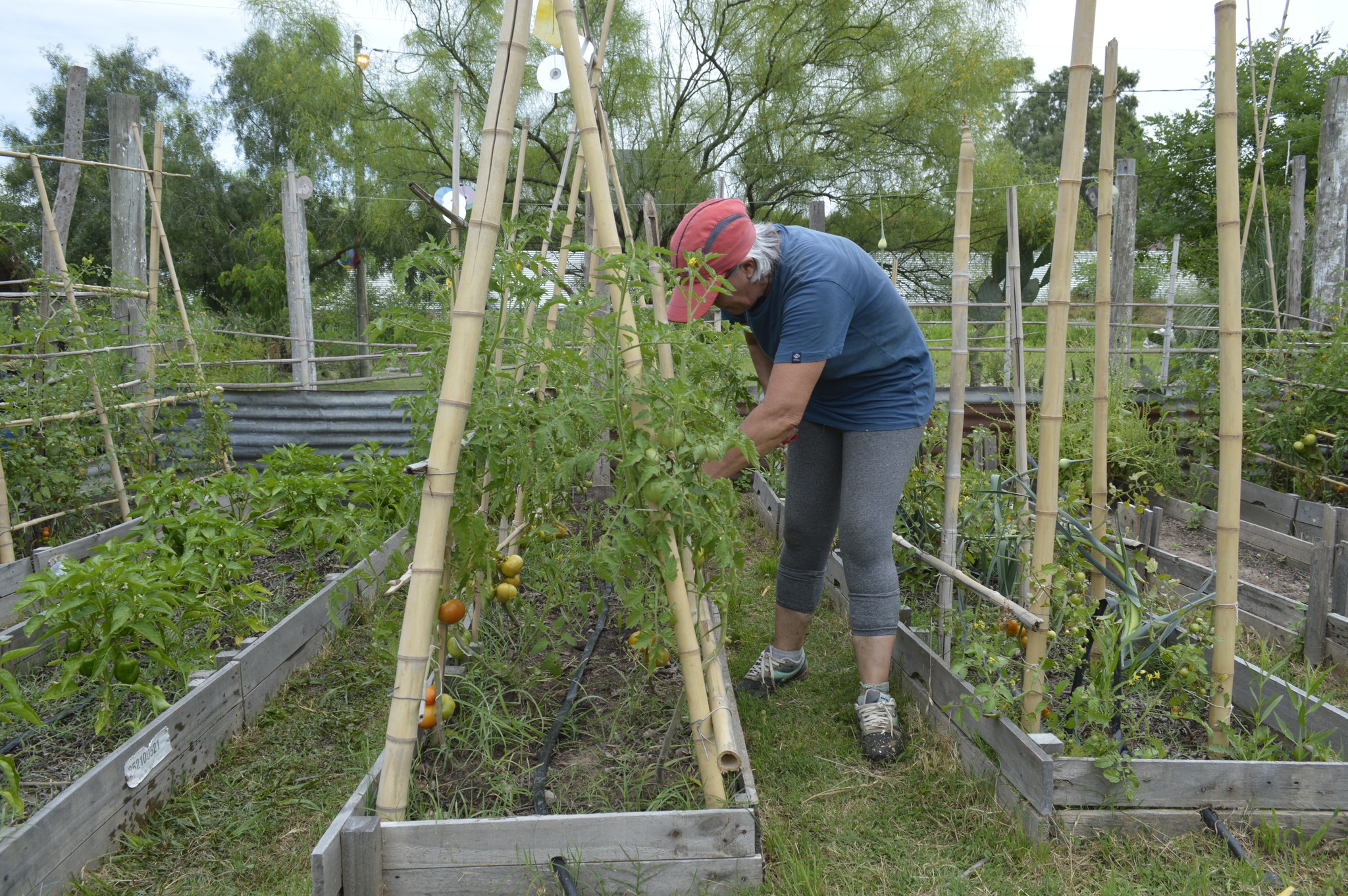 El siguiente domingo 7 de diciembre, la jornada tuvo varios frentes. En la huerta se ampliaron las estructuras de las tomateras y se desyuyaron los bancales. Además se cosecharon tomates y lechugas. También se hicieron algunos ajustes en el sistema de riego.