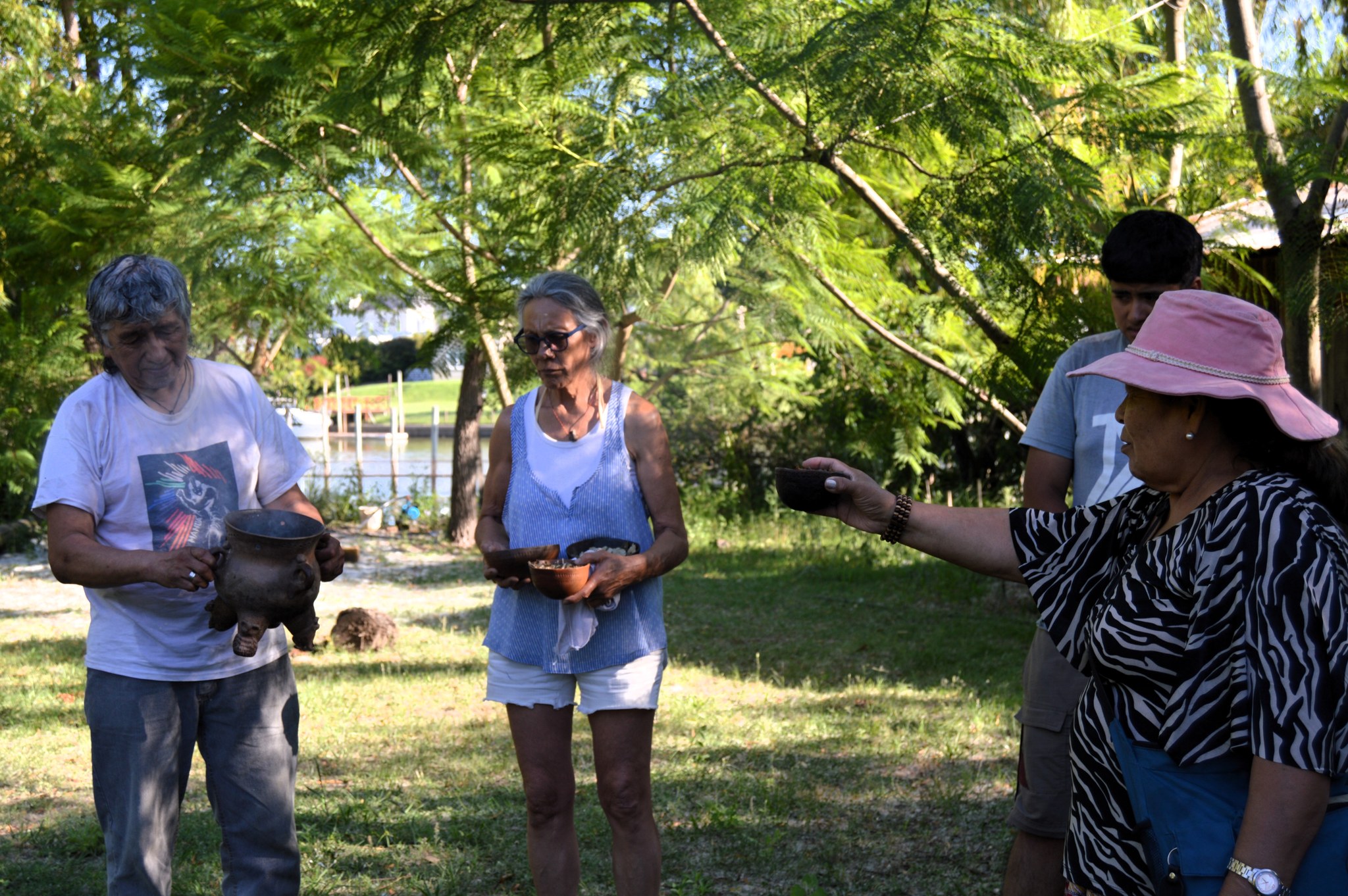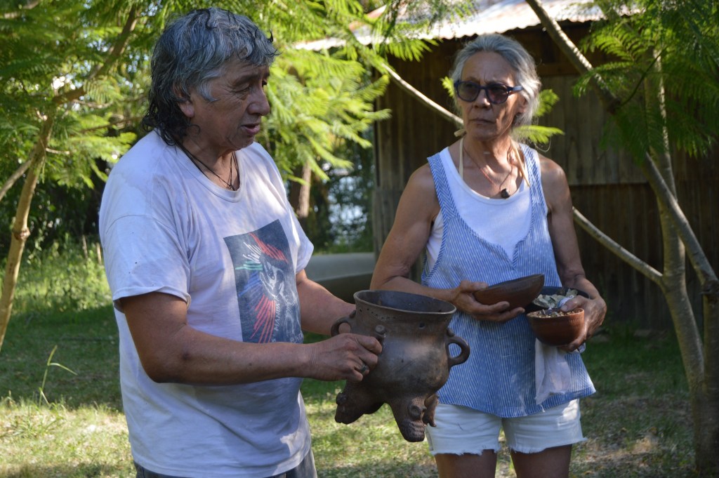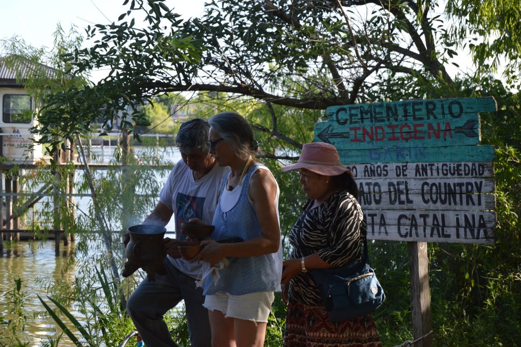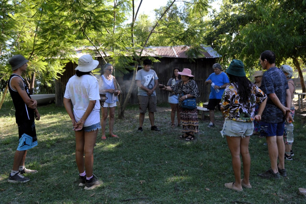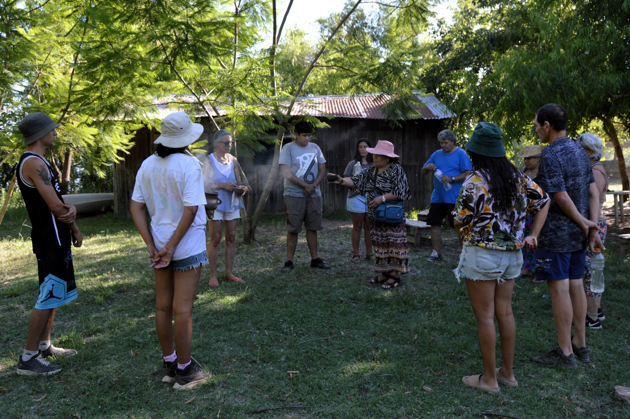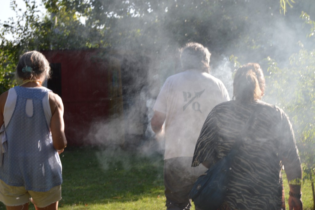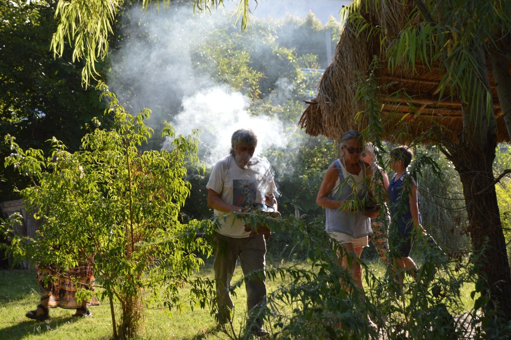 El humo de la yerba, el tabaco y las hojas de coca recorrió cada una de las distintas construcciones, espacios significativos y los límites del territorio comunitario, en una ceremonia encabezada por Santiago Chara, del Consejo de Ancianos, y Mónica Santos, integrante de la comunidad; respaldados por las plegarias en la lengua qom la’aqtaq de la abuela Mirta Romualdo de la Comunidad Qompí de Garín (quien vino acompañada por su hija, la cacica Cintia López), además de miembros y allegados de Punta Querandí.