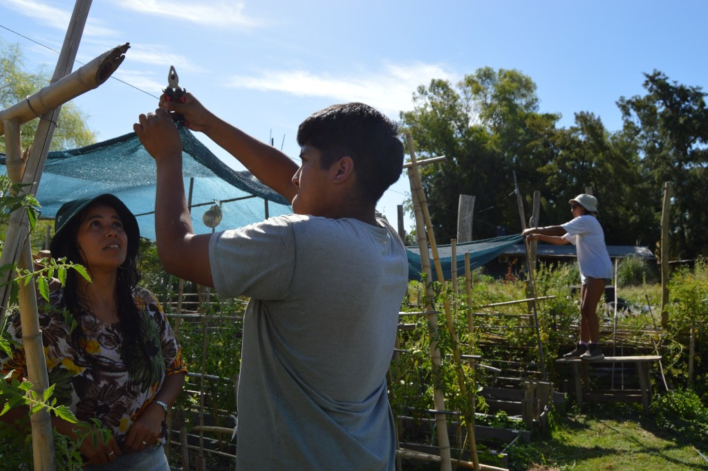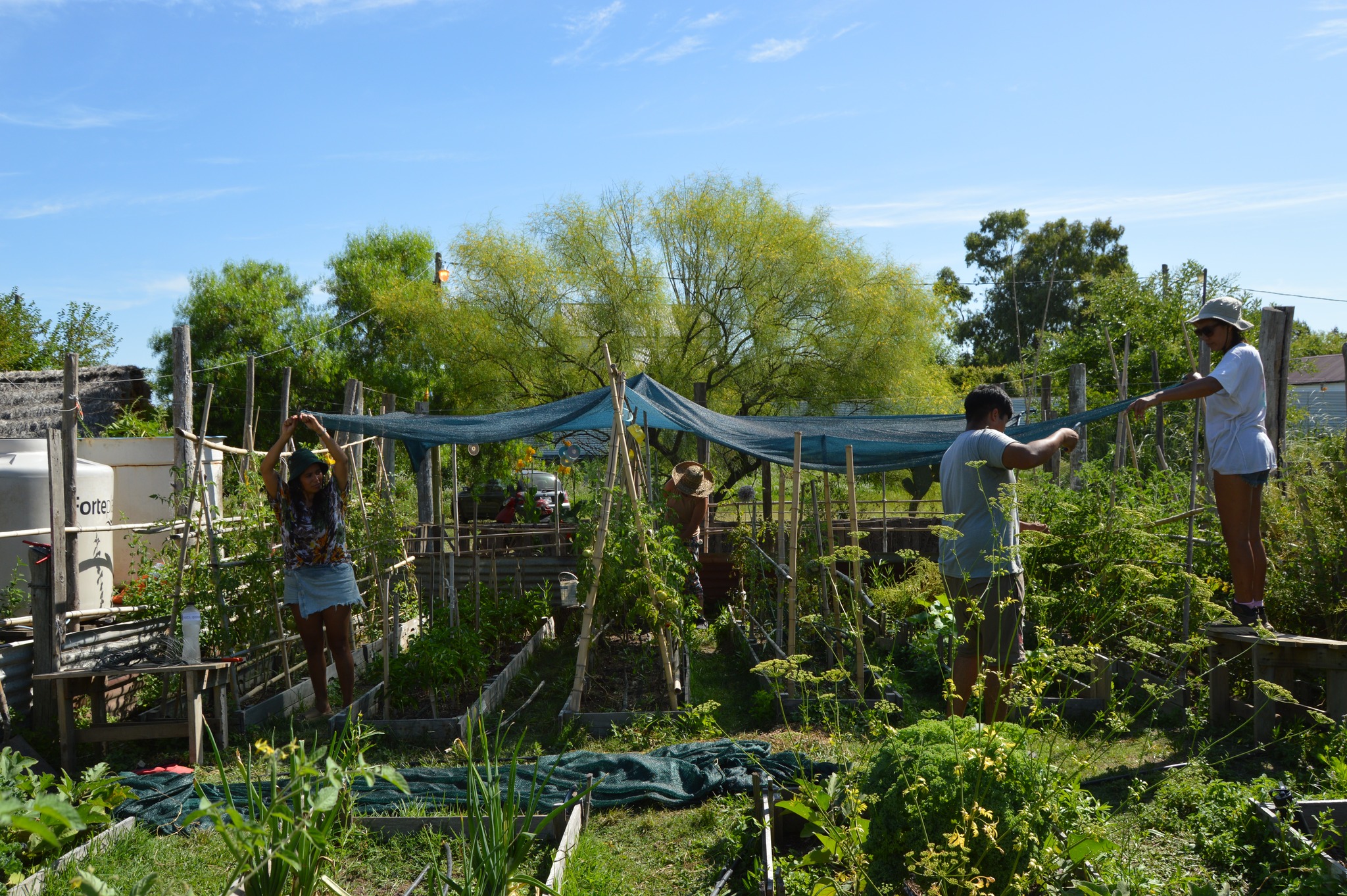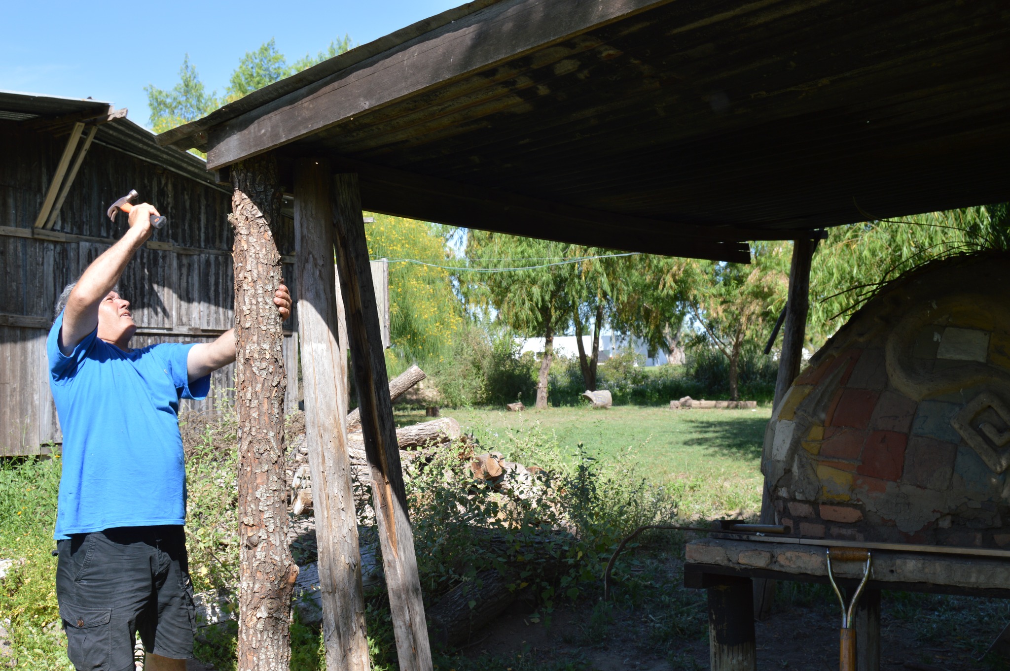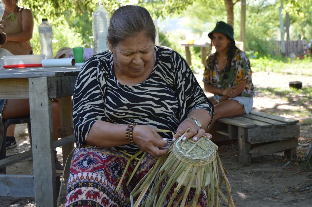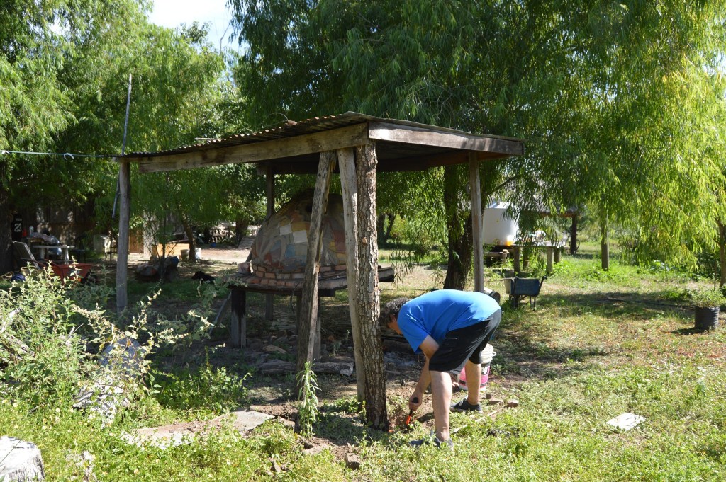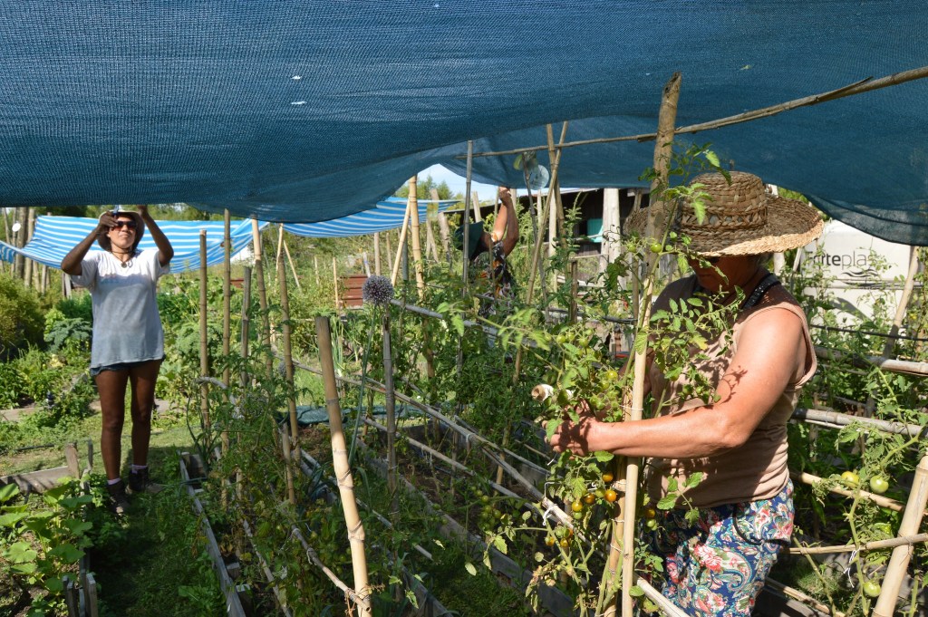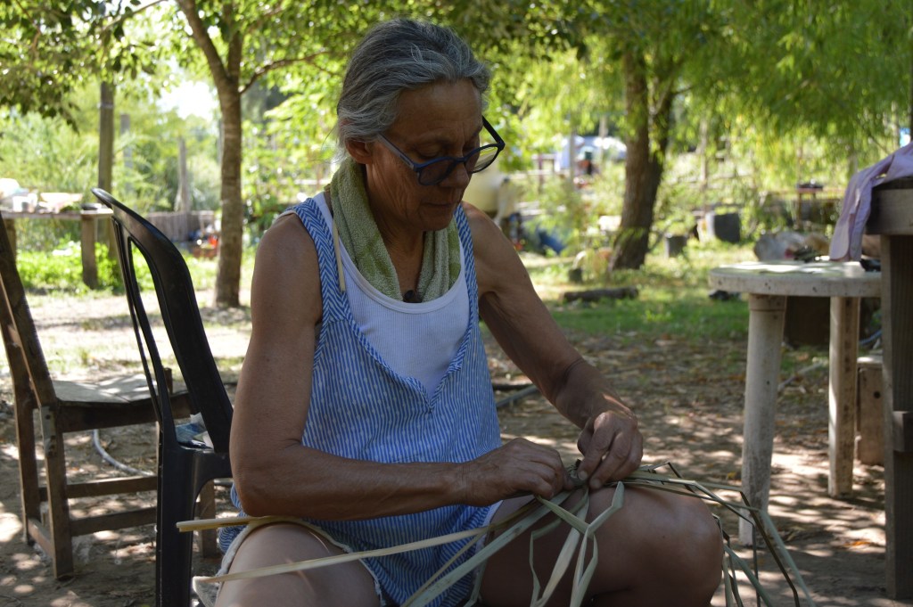 Durante el encuentro también se hicieron algunas tareas de mantenimiento: se pusieron media sombras en la huerta para proteger lo sembrado de los fuertes calores y se cambiaron los postes del techo del horno de barro, mientras que algunas personas practicaron cestería con totora.