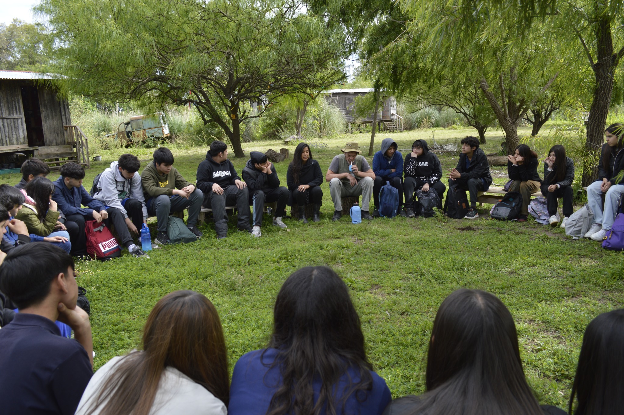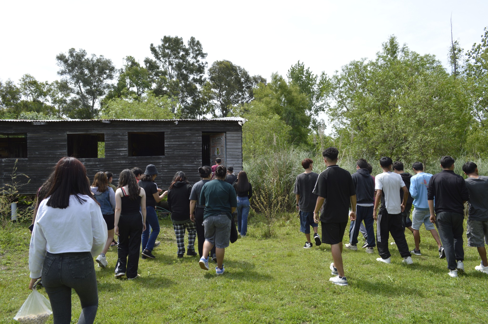 El jueves 6 de noviembre llegaron estudiantes de tercer año de una de las escuelas más cercanas: la Secundaria N°16 «Reconquista» de la localidad de Dique Luján, a tres o cuatro kilómetros de Punta Querandí, distancia que recorrieron caminando por la «vía muerta». Vinieron acompañados por tres docentes: Angel Villafañe (geografía), Luis Quesada (prácticas del lenguaje) y Cecilia Leoncini (Coordinadora Institucional de Trayectorias Educativas).