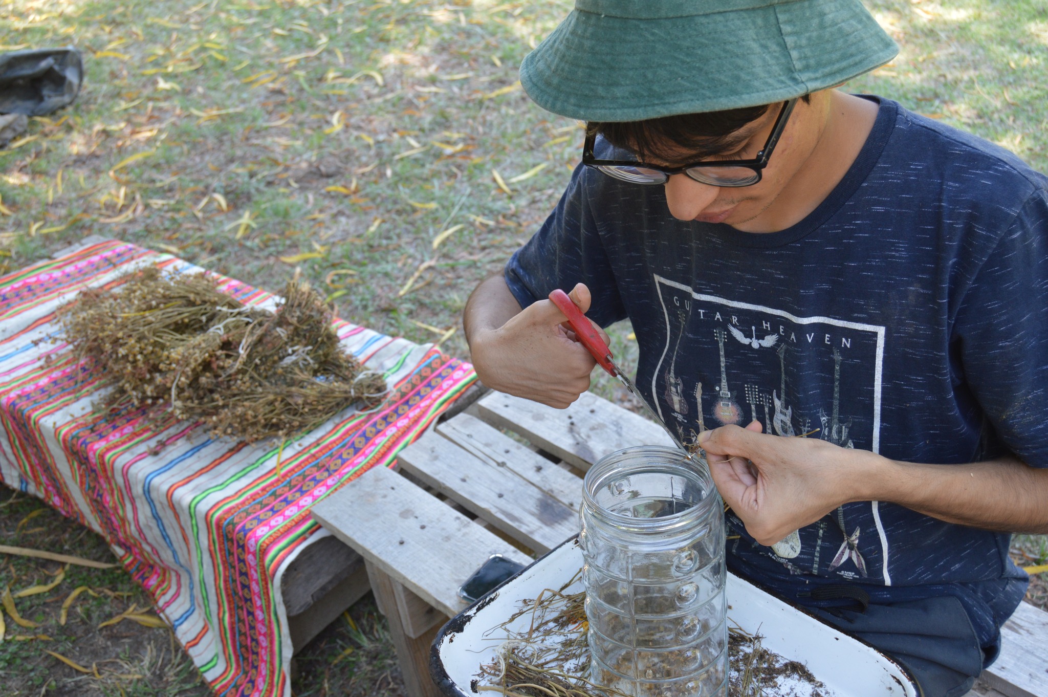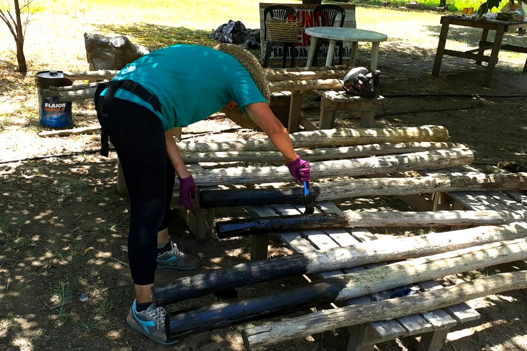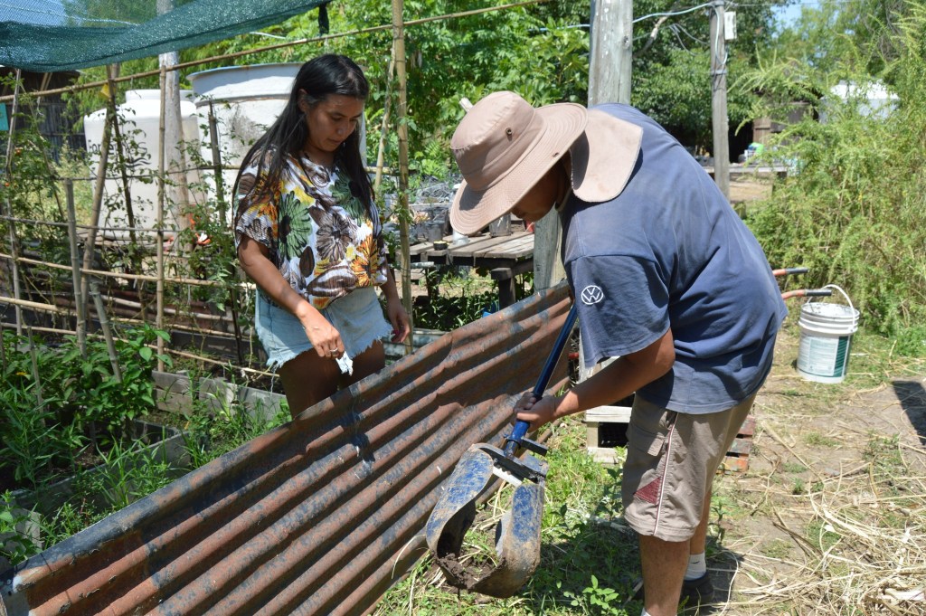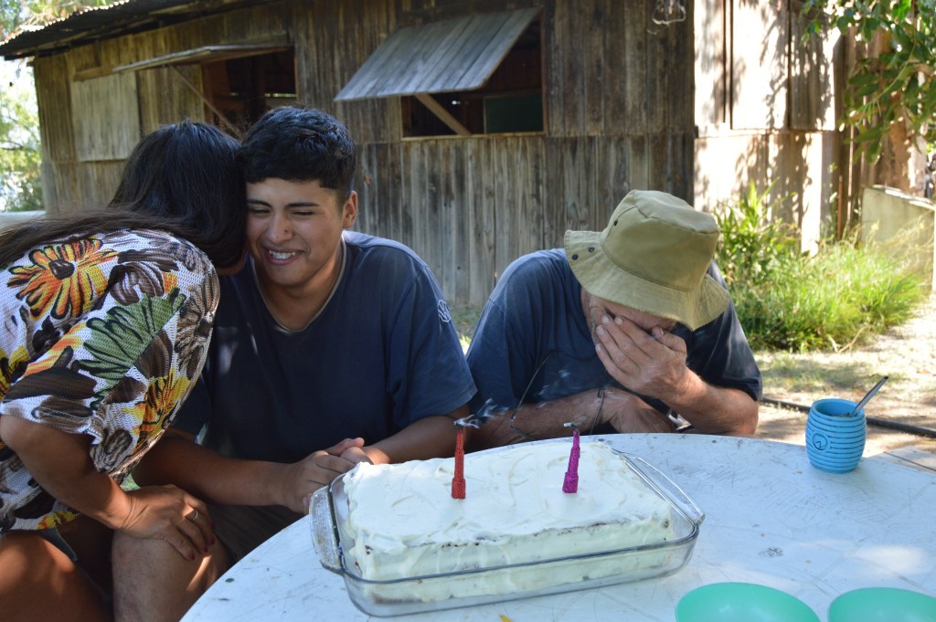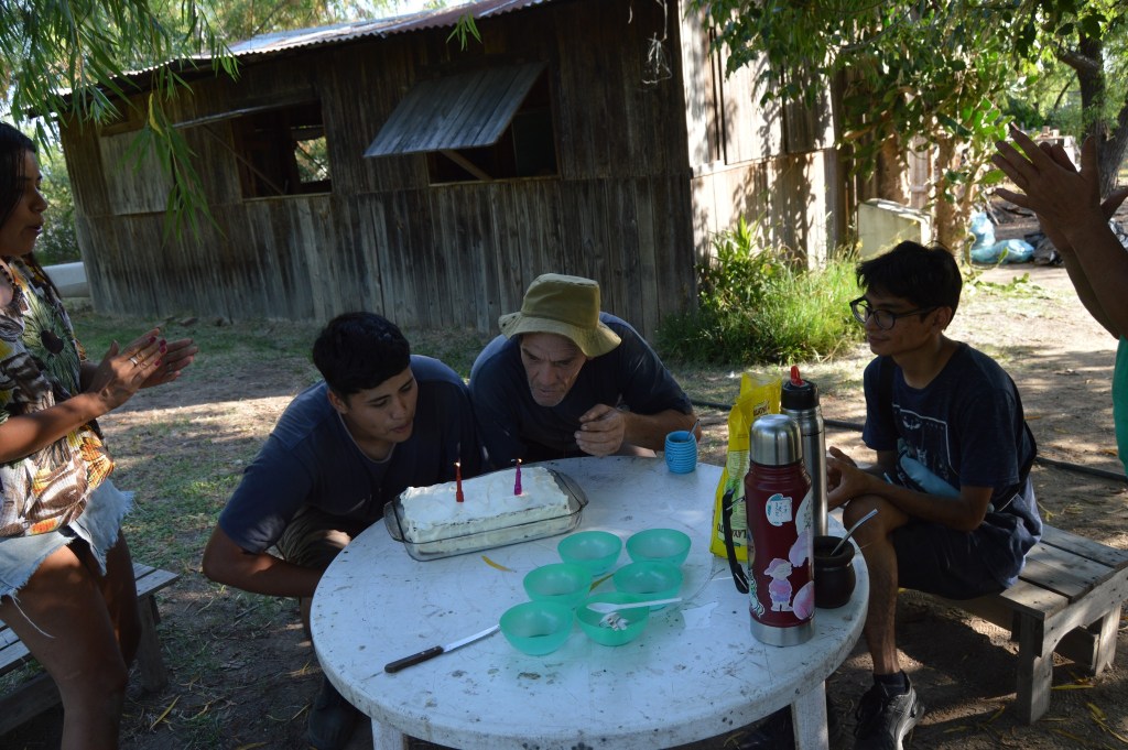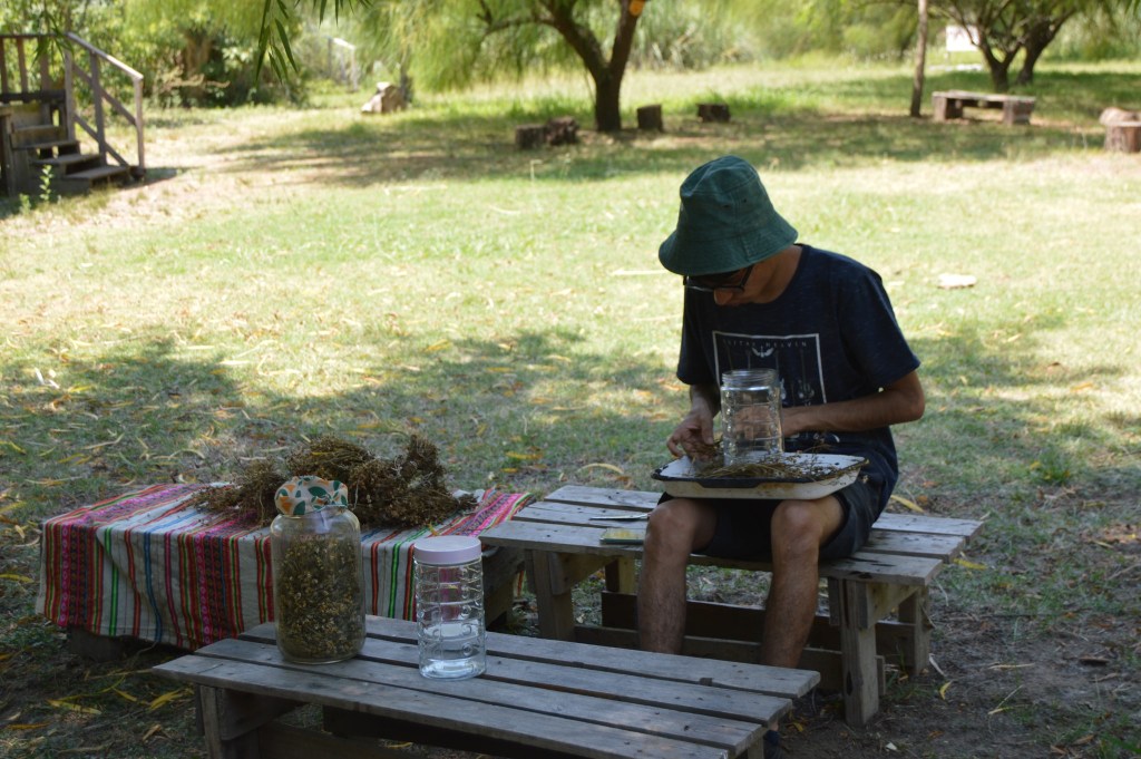 Más temprano, cruzamos el Arroyo Garín hacia lo de una familia vecina para recolectar bosta de caballo. Este insumo es fundamental para la construcción del nuevo vivero, ya que se mezclará con barro y arcilla para levantar sus paredes. Además, pusimos fin al proceso de secado de la manzanilla, guardándola para futuras infusiones, y cerramos el día con la alegría de festejar el cumpleaños de dos integrantes de la comunidad.
