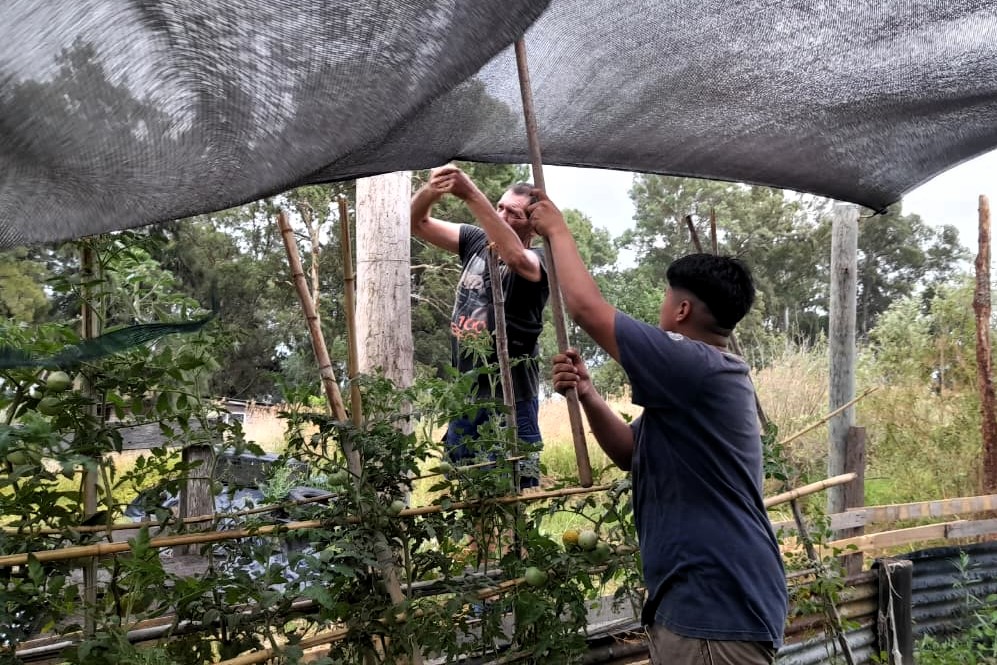 La labor comunitaria ahora se extiende: desde hace meses, los jueves se han consolidado como un segundo eje de trabajo semanal centrado en la huerta. En la convocatoria del 15 de enero, avanzamos con el trasplante de cebollas, el mantenimiento de las tomateras y el ajuste de las mediasombras para proteger los cultivos del intenso sol de verano.