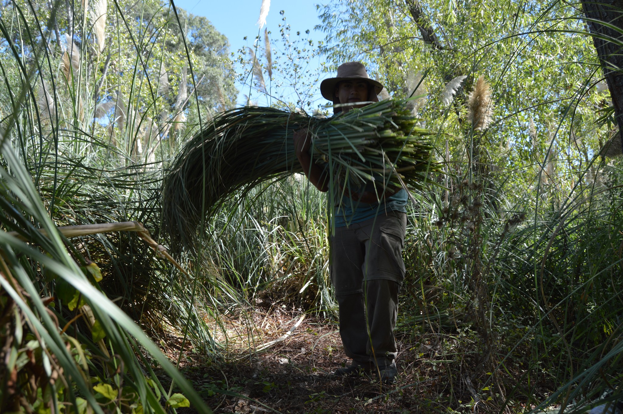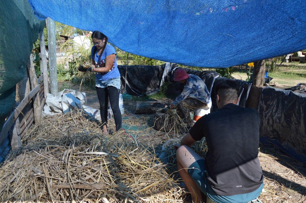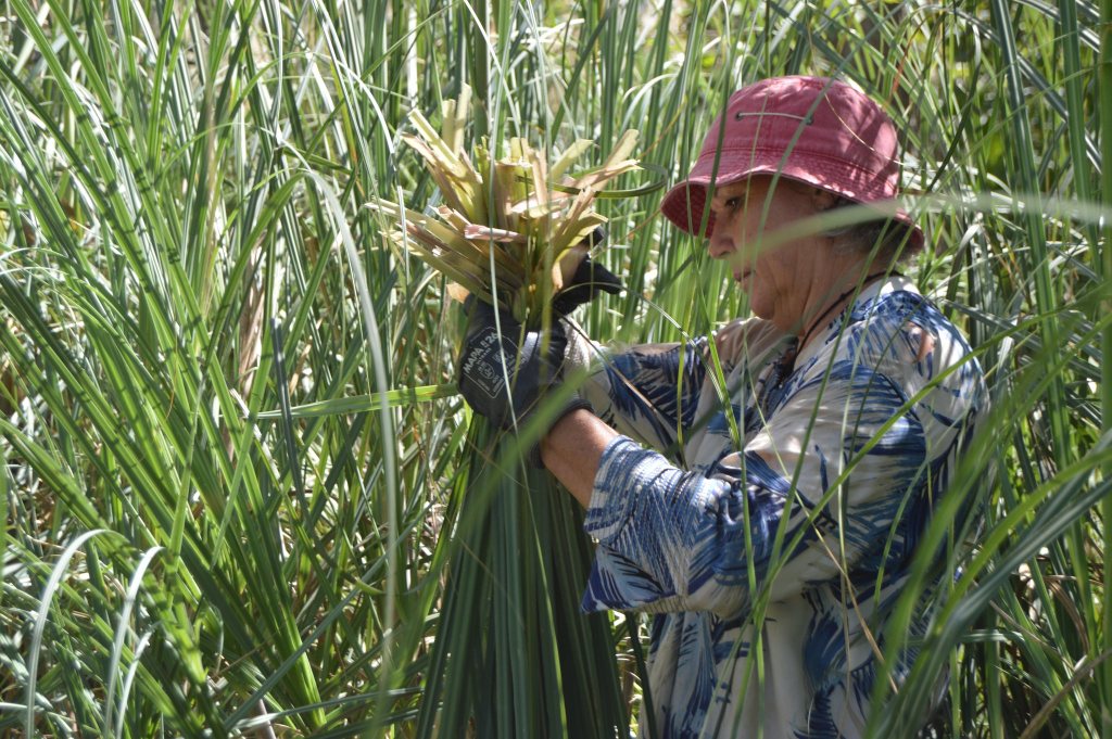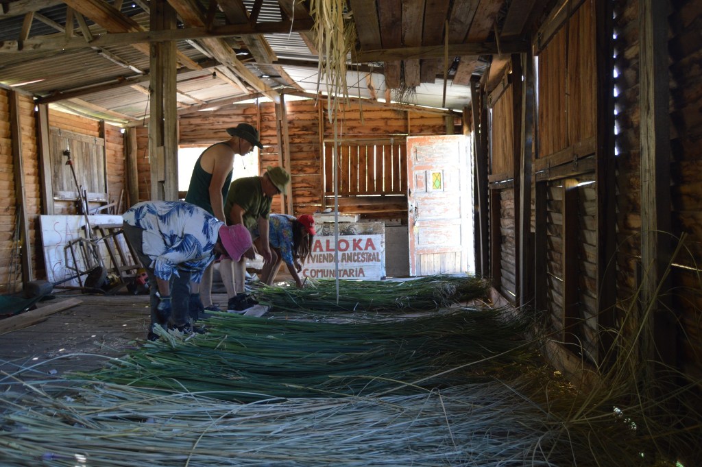 El encuentro de cerámica no fue la única actividad de la jornada. Aprovechando la luna en cuarto menguante, por la mañana y hasta el mediodía se realizó un corte de paja brava con el objetivo de hacerle reparaciones a la Maloka, vivienda comunitaria con arraigo ancestral en el Delta del Paraná y alrededores.