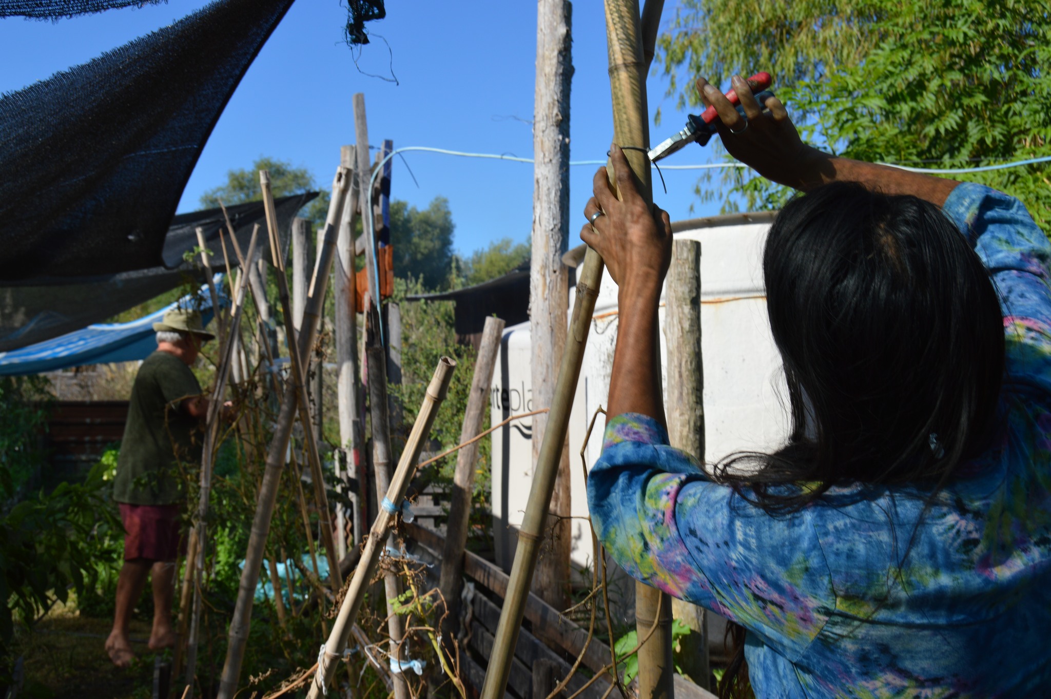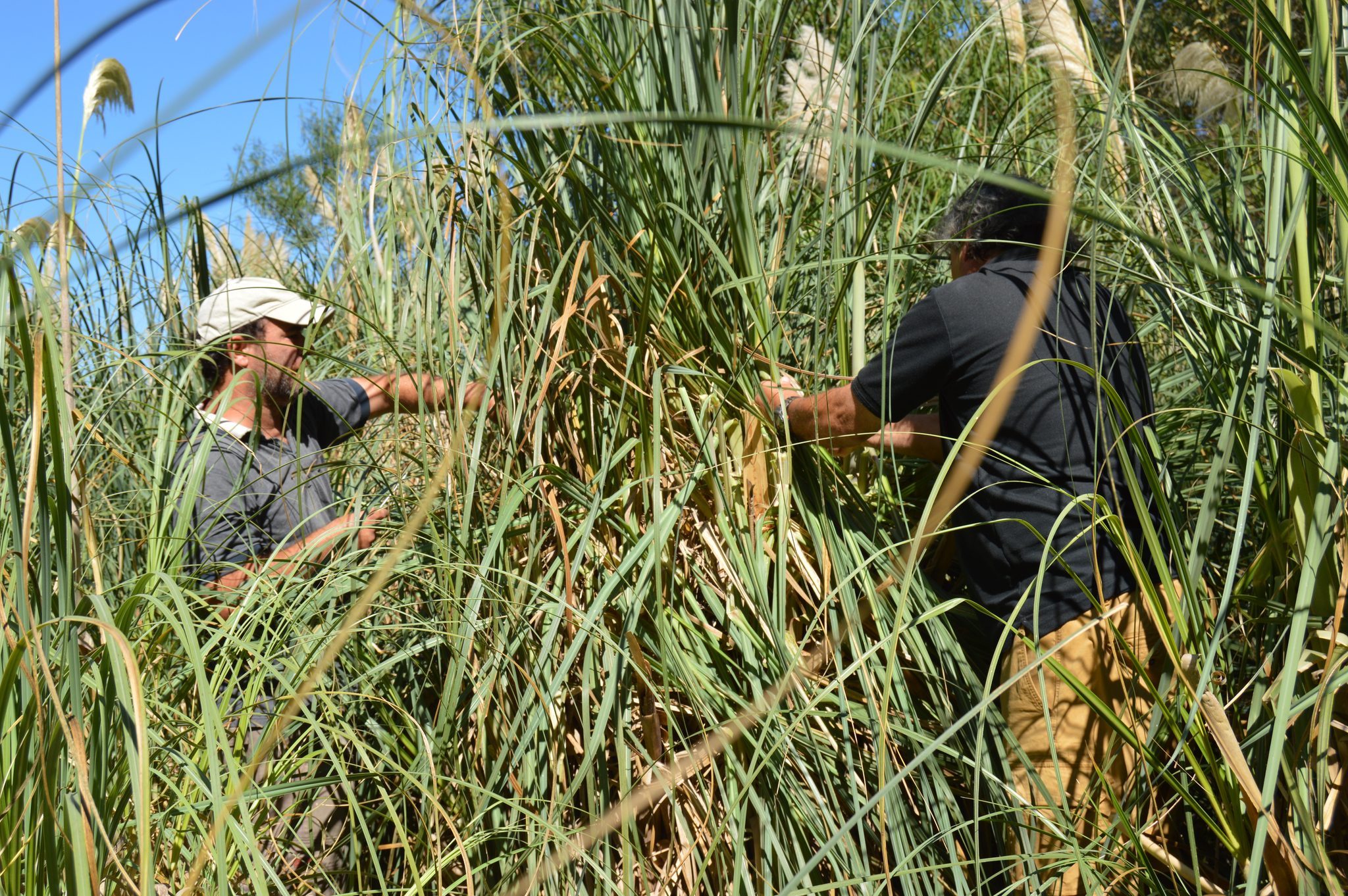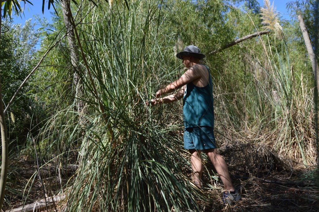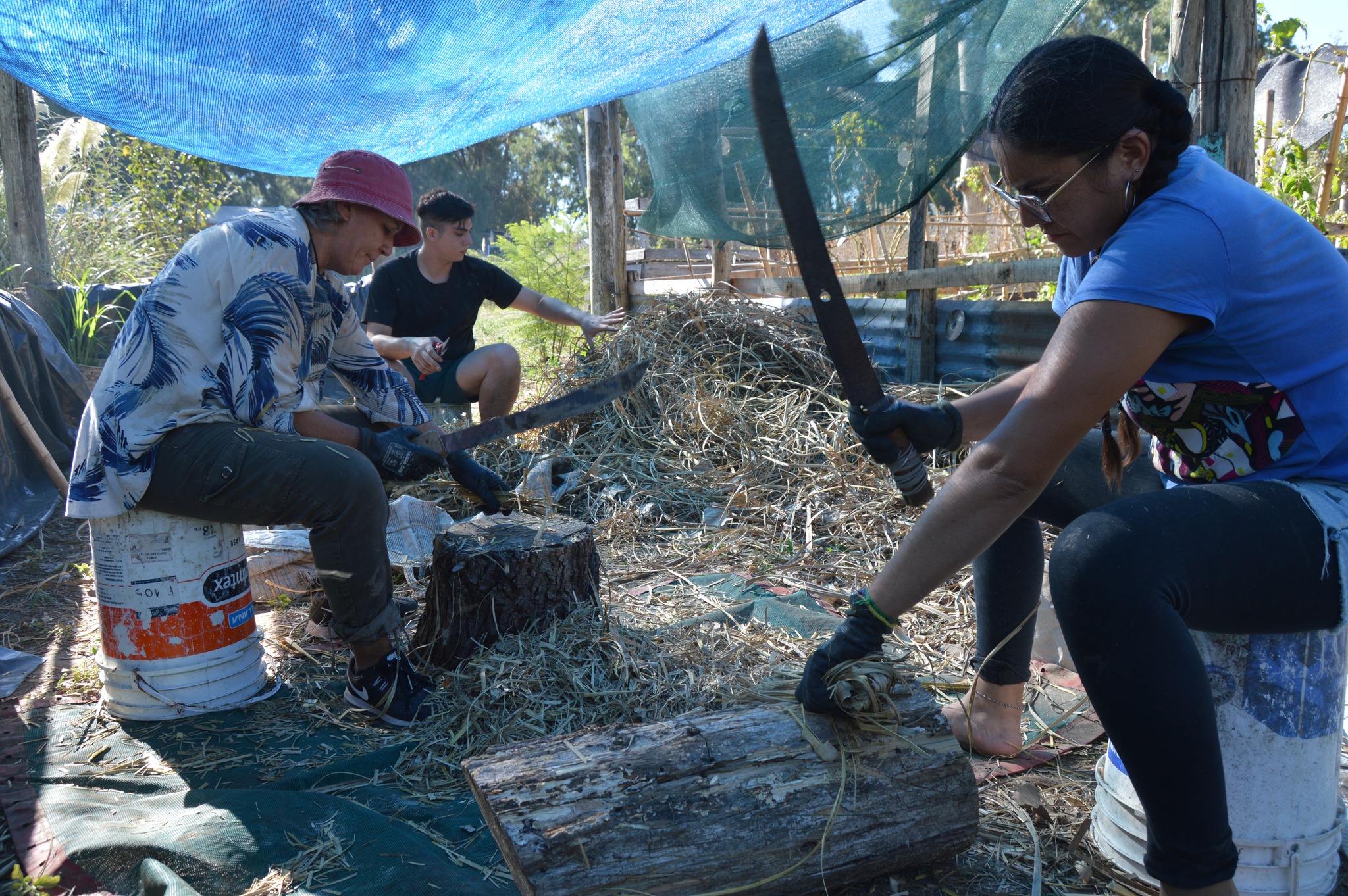 El encuentro de cerámica no fue la única actividad de la jornada. Aprovechando la luna en cuarto menguante, por la mañana y hasta el mediodía se realizó un corte de paja brava con el objetivo de hacerle reparaciones a la Maloka, vivienda comunitaria con arraigo ancestral en el Delta del Paraná y alrededores.