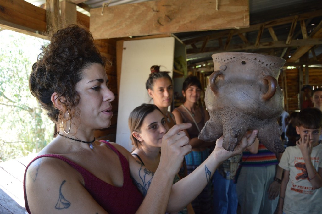 «Fue un encuentro muy hermoso, vinieron compañeras de distintos puntos de la provincia y empezamos a bocetar un mural colectivo para embellecer el territorio, va a ser un mural mezclando pintura y cerámica para que las personas cuando lleguen se hagan una idea del recorrido y de lo que sucede en Punta Querandí», manifestó Julieta Medina (Taller Anatiri), quien junto a Florencia Borowski (Taller Amaru) sostienen en el territorio este espacio de aprendizajes desde 2022.