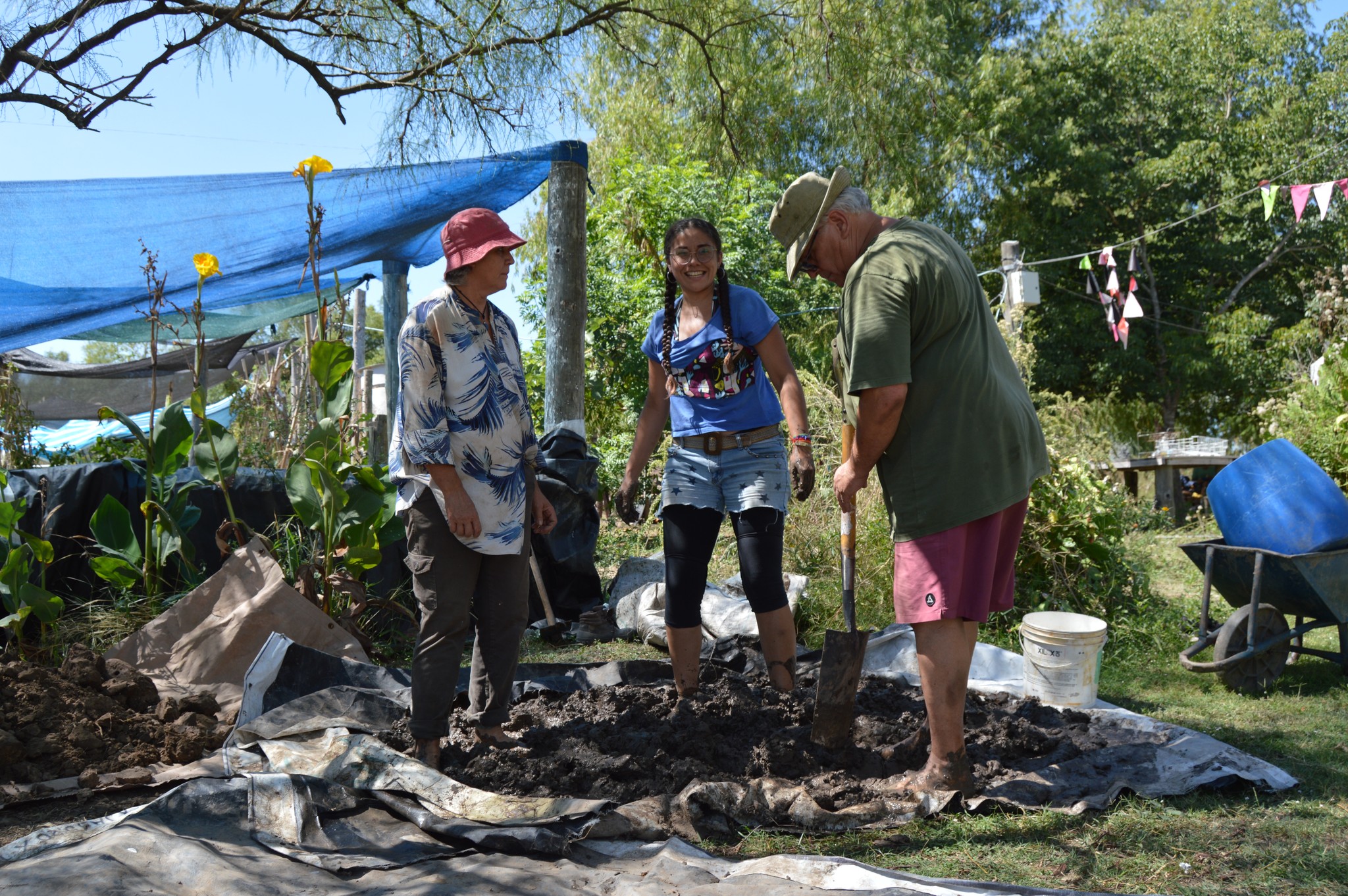 Además, se trabajó en los preparativos para la construcción con barro mezclando y pisando los materiales recolectados en los días previos, como arcilla y bosta.