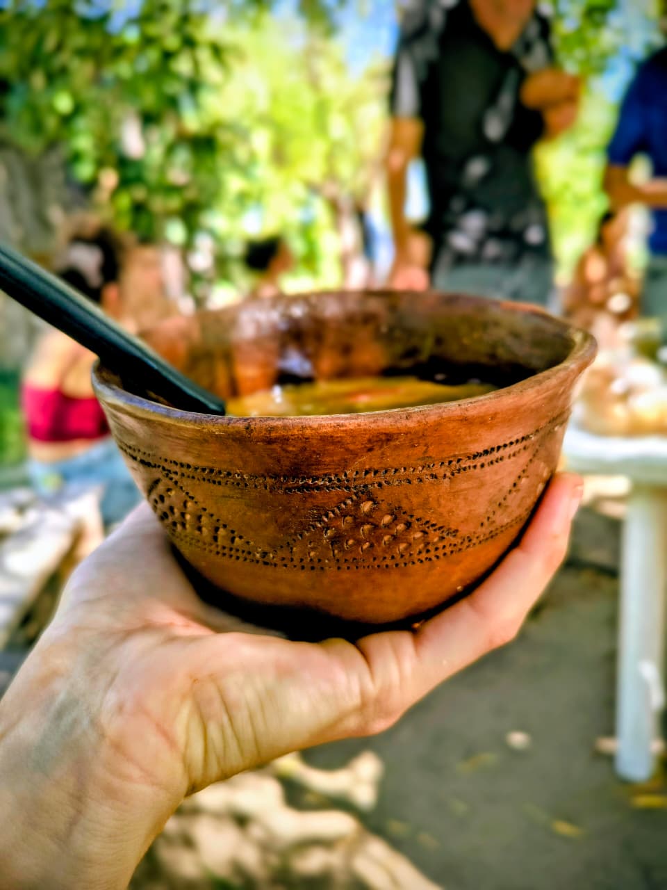 Como ya está finalizando el verano, las ceramistas propusieron volver a los guisos elaborados en el fogón, también como una forma de tenerlo presente a Raúl Lucero, quien falleció hace un mes y era siempre el responsable de la olla.
