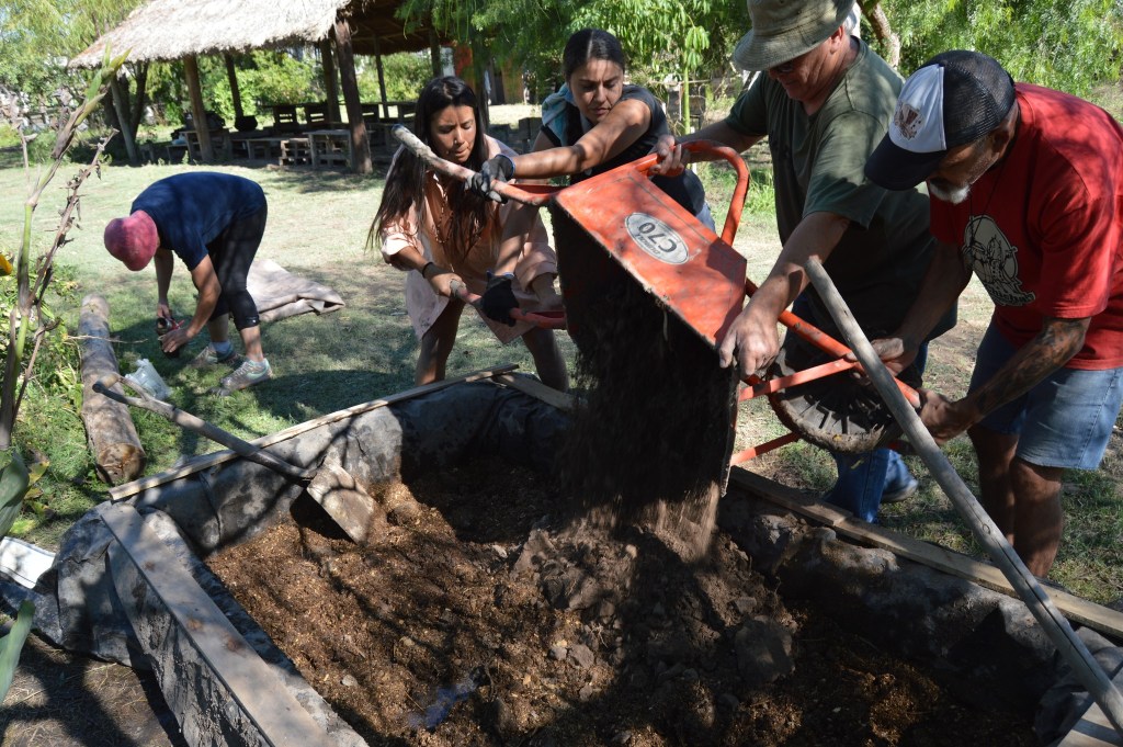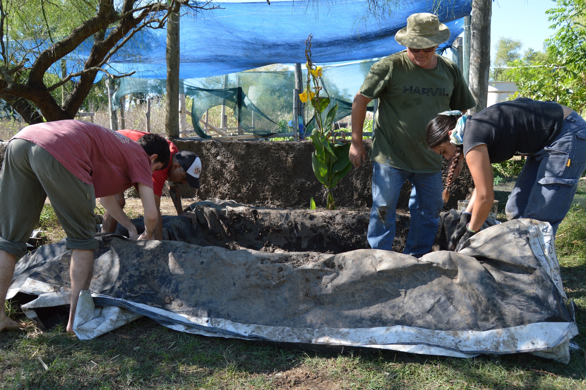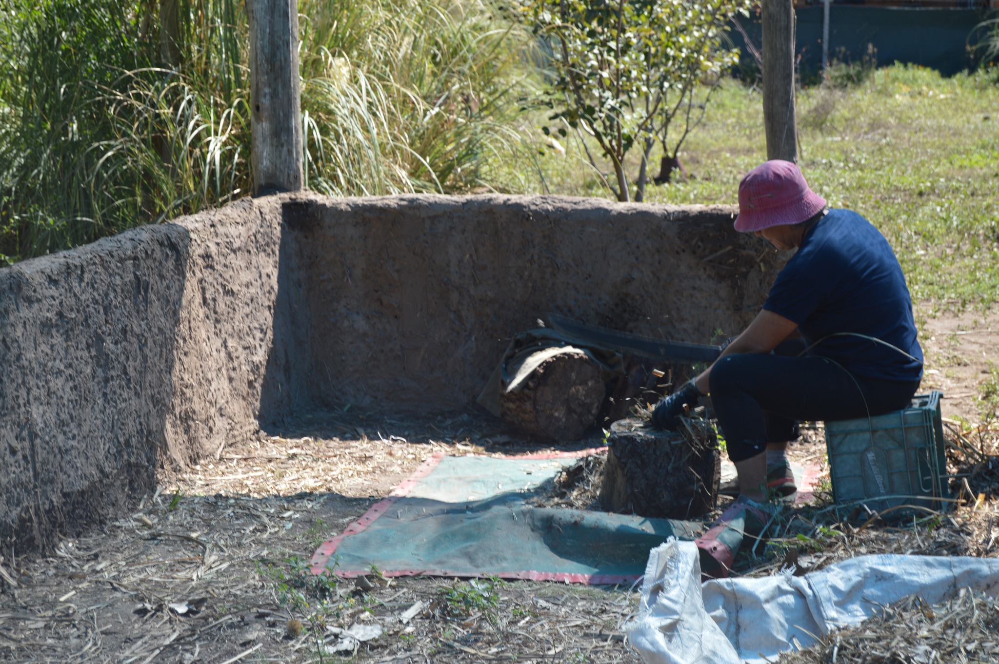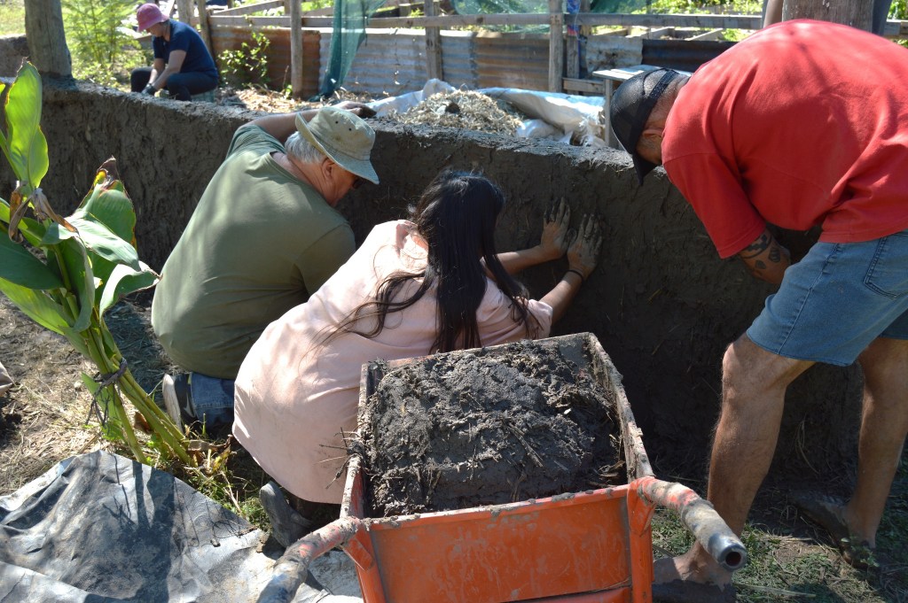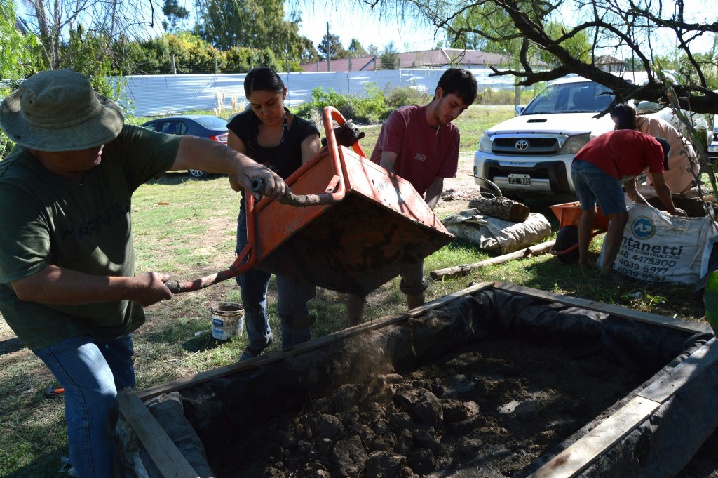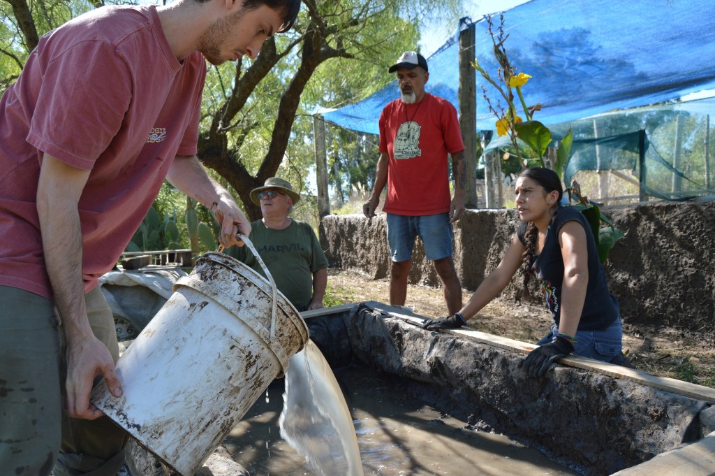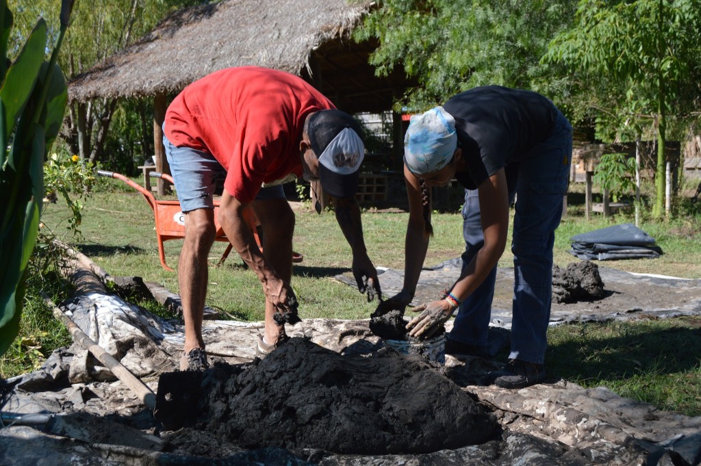 Otra novedad importante fue la construcción de una pileta de barro, una infraestructura de acopio que facilitará la logística de la construcción comunitaria.