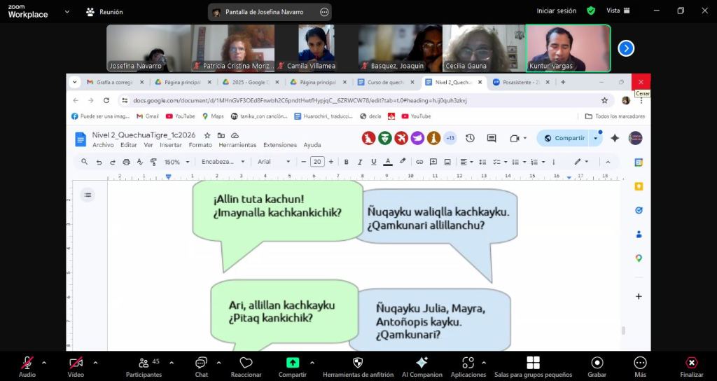 Con 1.300 personas anotadas, a partir del 27 de marzo comenzaron los 11 cursos gratuitos de guaraní, quechua, mapuche, qom y moqoit, con un cuerpo docente integrado por hablantes de cuatro provincias: Jujuy, Formosa, Chaco y Buenos Aires. En este informe mostramos algunas imágenes de las primeras clases virtuales.