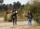 Corte de paja brava para concluir el quincho comunitario de Punta Querandí